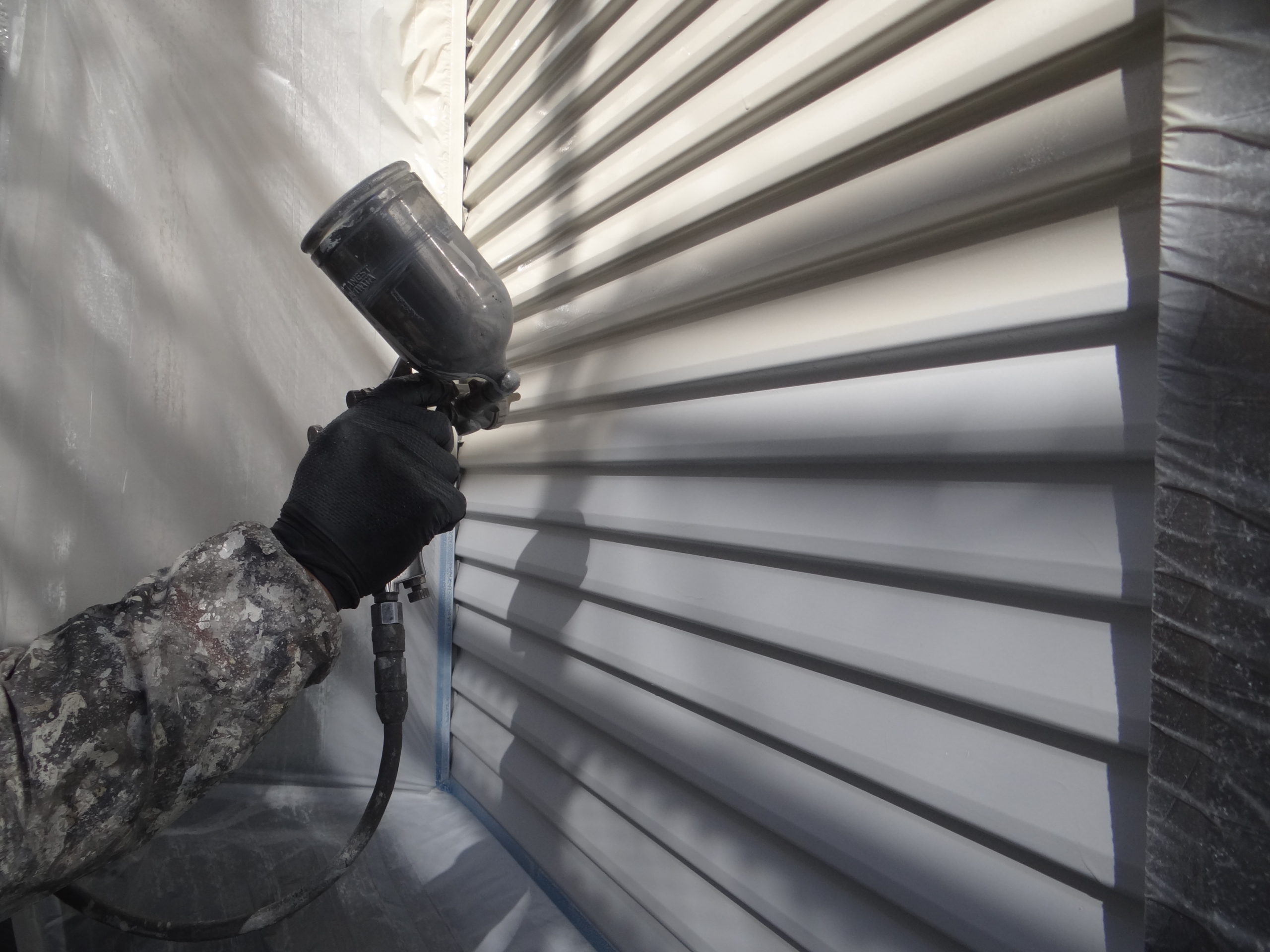 乾燥後は上塗りを2回吹いて仕上げます。天気もよく順調に進めております。