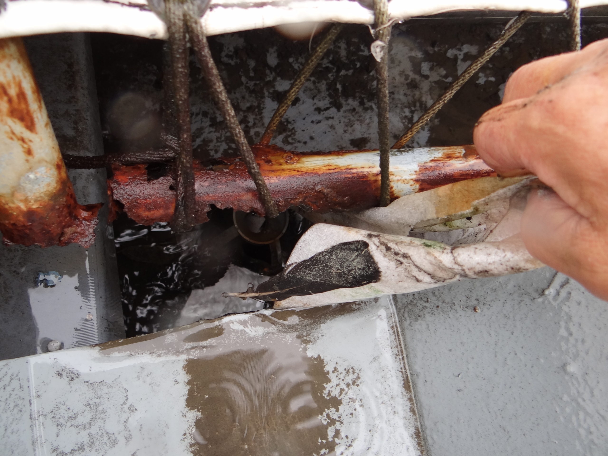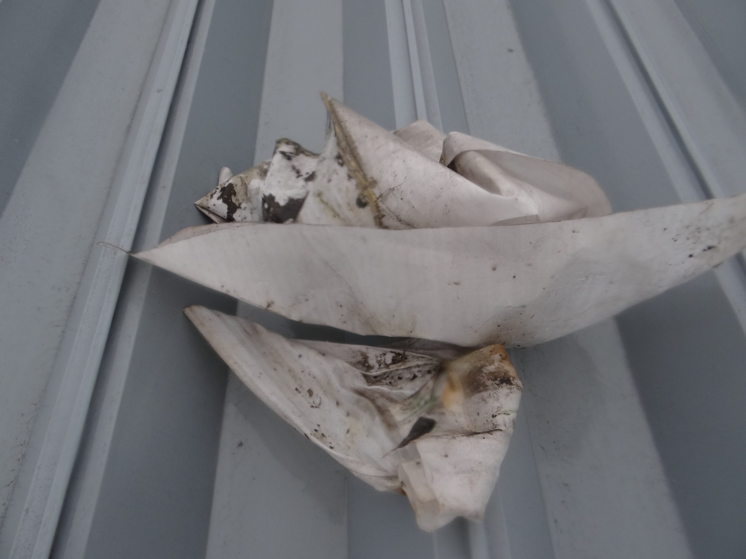 次の現場でも樋の清掃。今度は梱包材が巻き付いています。