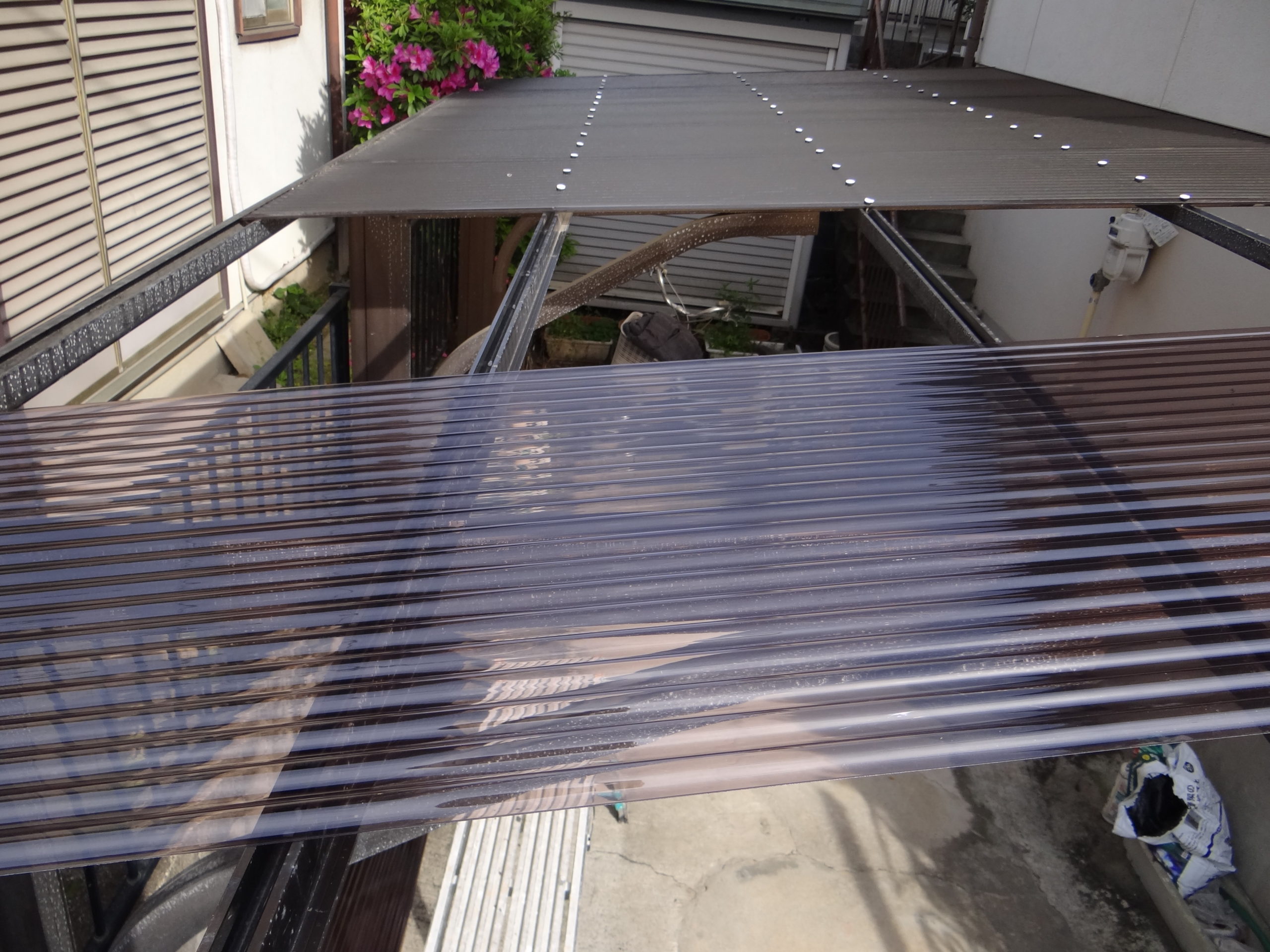 夕方、ご近所さんからポリカ屋根が飛んじゃったので直して欲しいとの事。明日の夜に雨みたいなので3枚張って復旧完了。そ~んなパタパタとした日です。