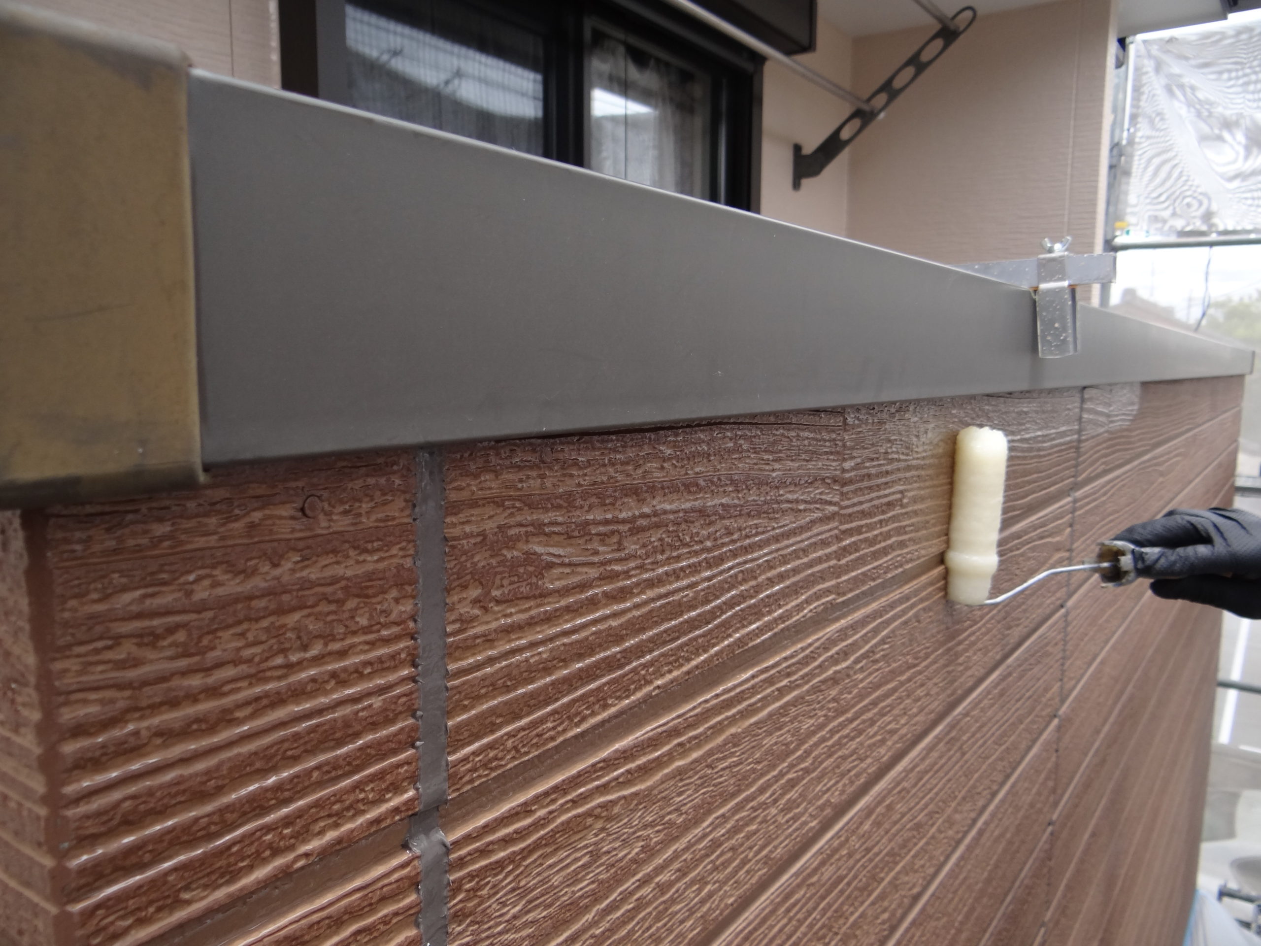 今日は外壁のクリヤー塗装です。使用材料はフッ素樹脂塗料。そしてクリヤー塗布。その後はタッチアップなどを行って、ほぼ完了です。残るは来週の仮設足場の解体となります。