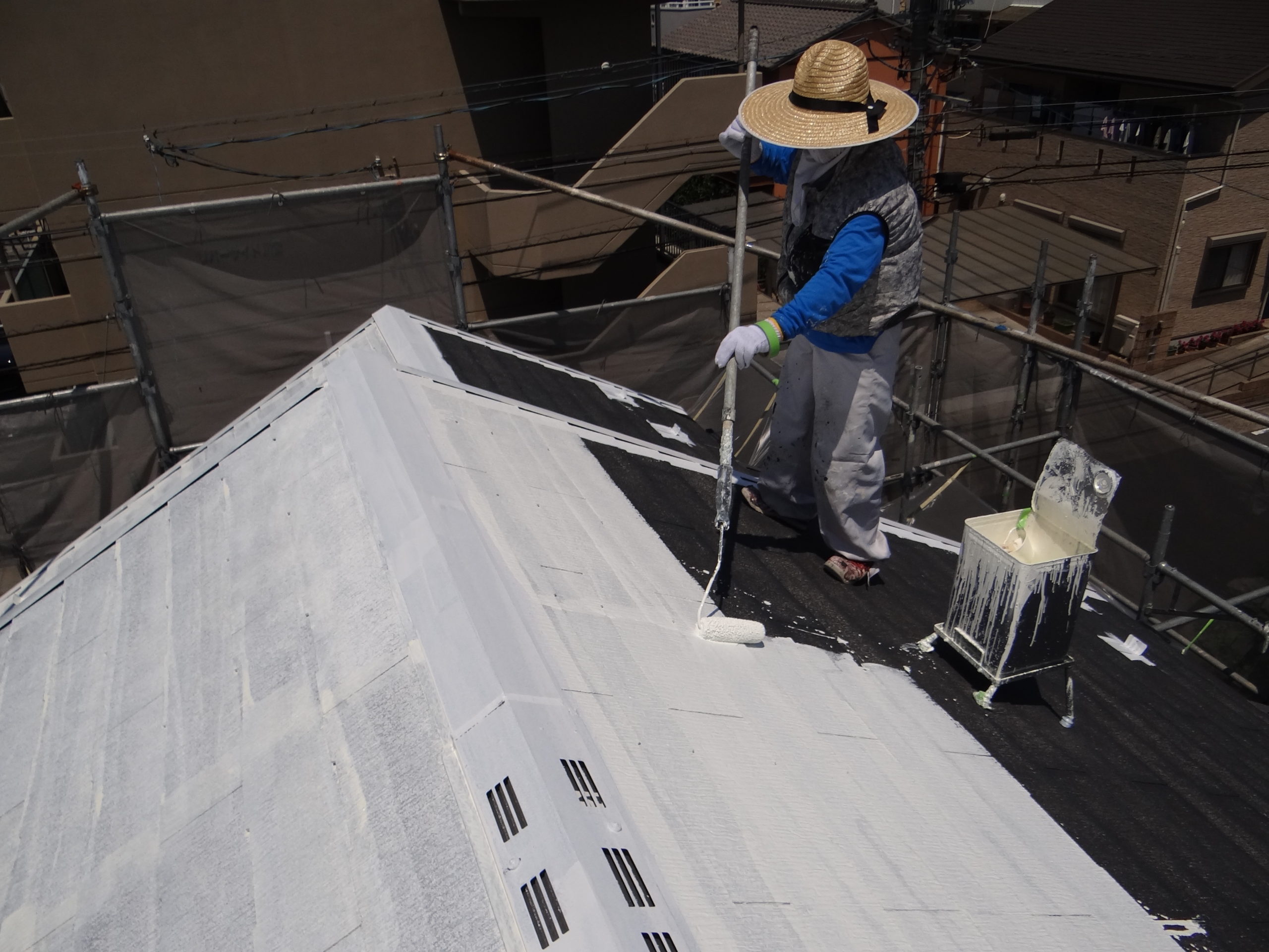 屋根の塗装を始めます。今回も遮熱フッ素樹脂塗料で仕上げます。