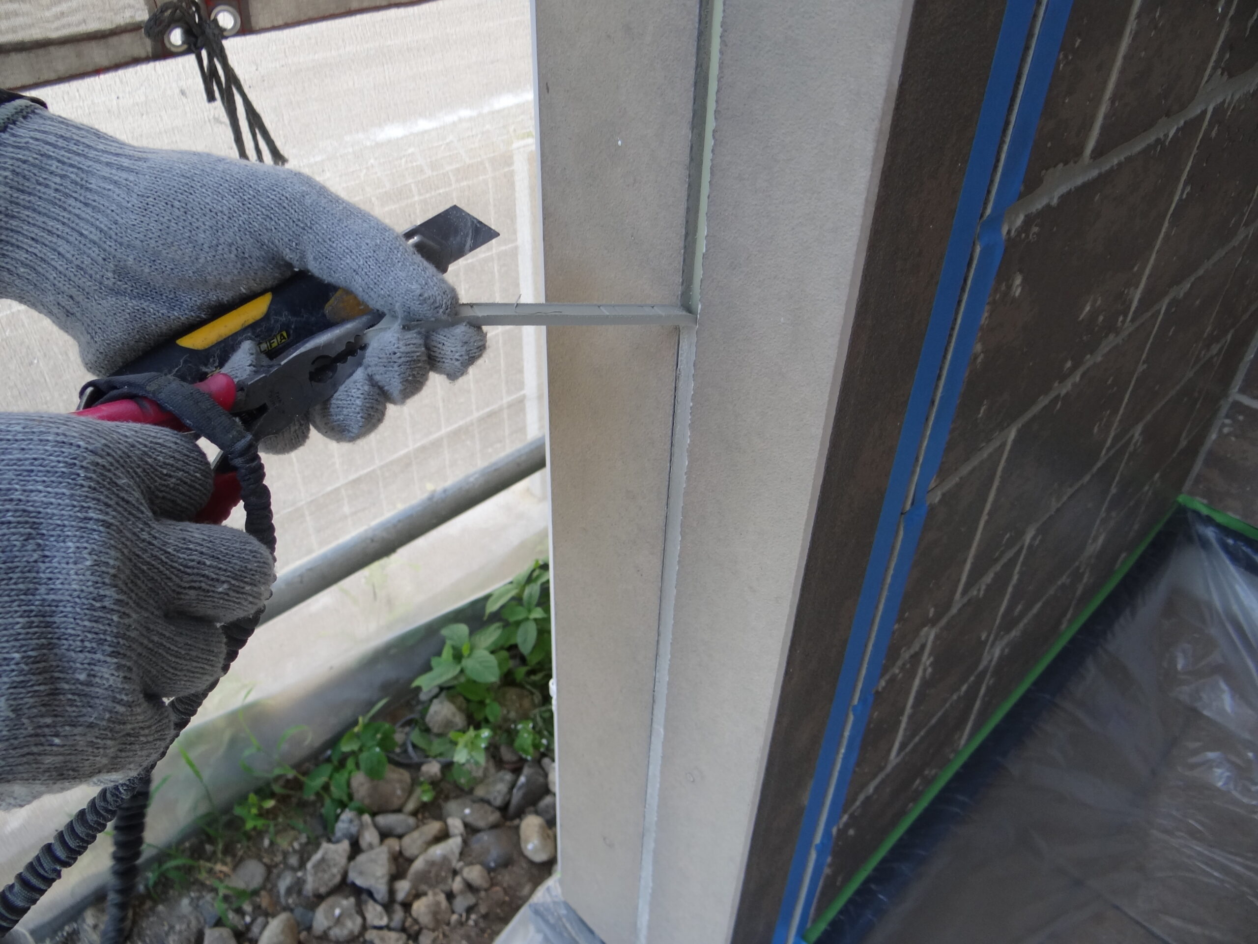 外壁塗装は仕様変更があり、シールの撤去打ち替えを進めました。