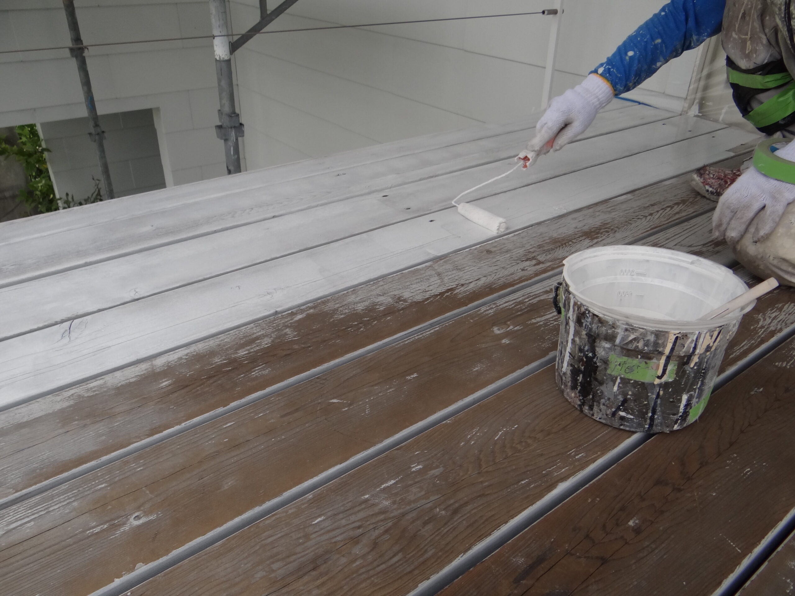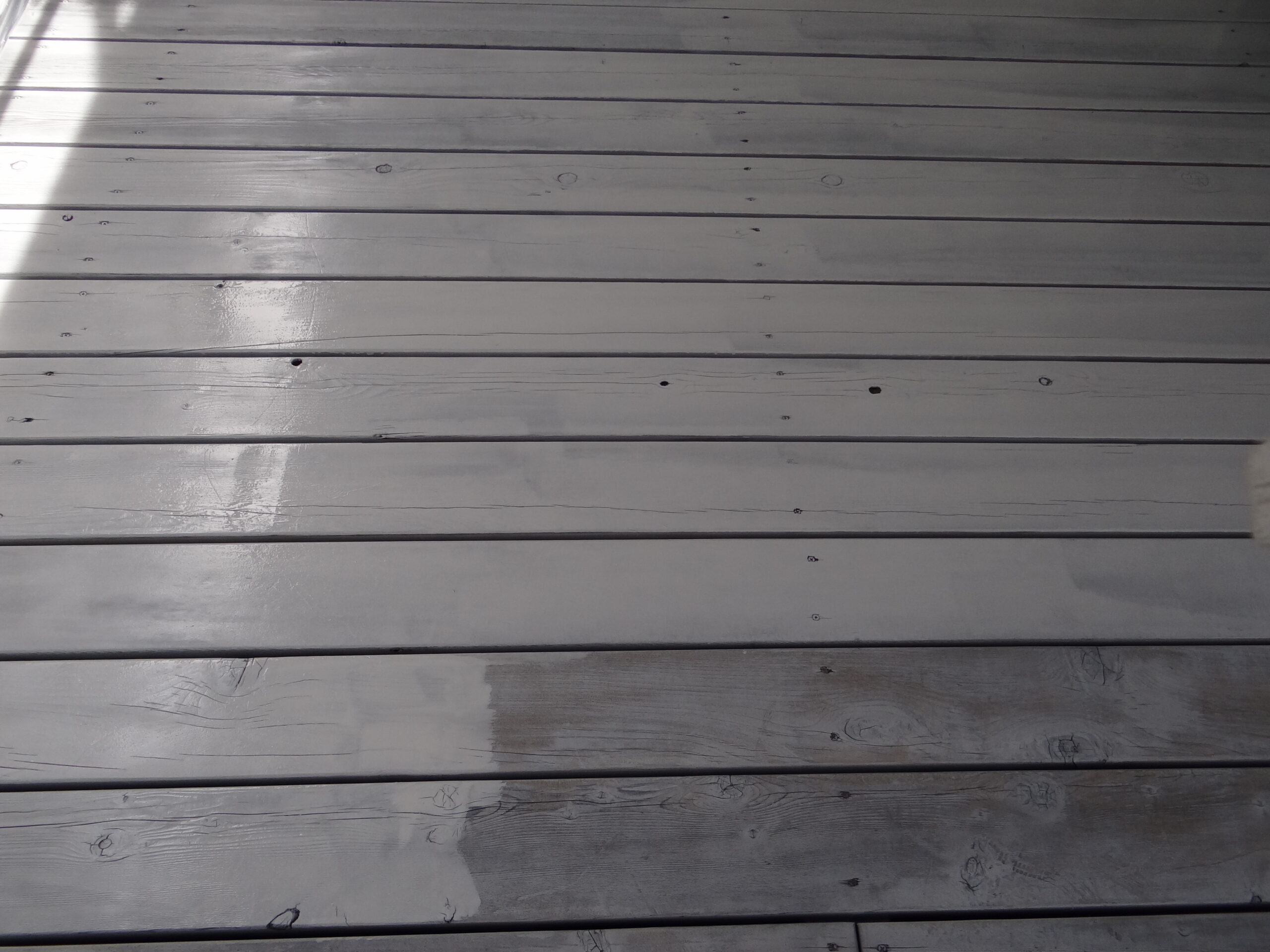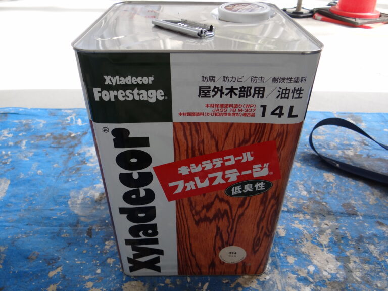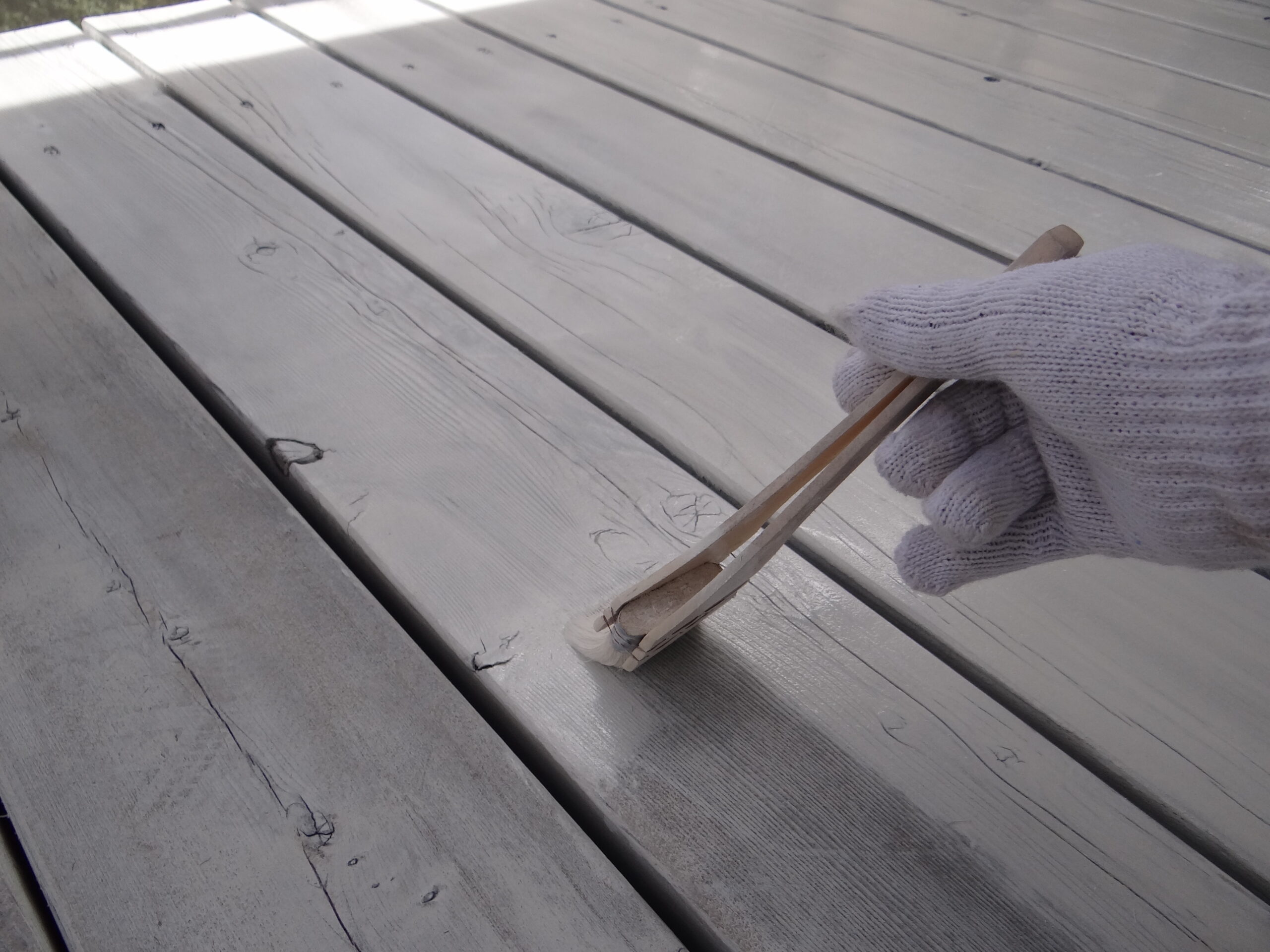 ウッドデッキの素地調整が終わったので塗装を進めます。使用材料はキシラデコール。色はワイスです。