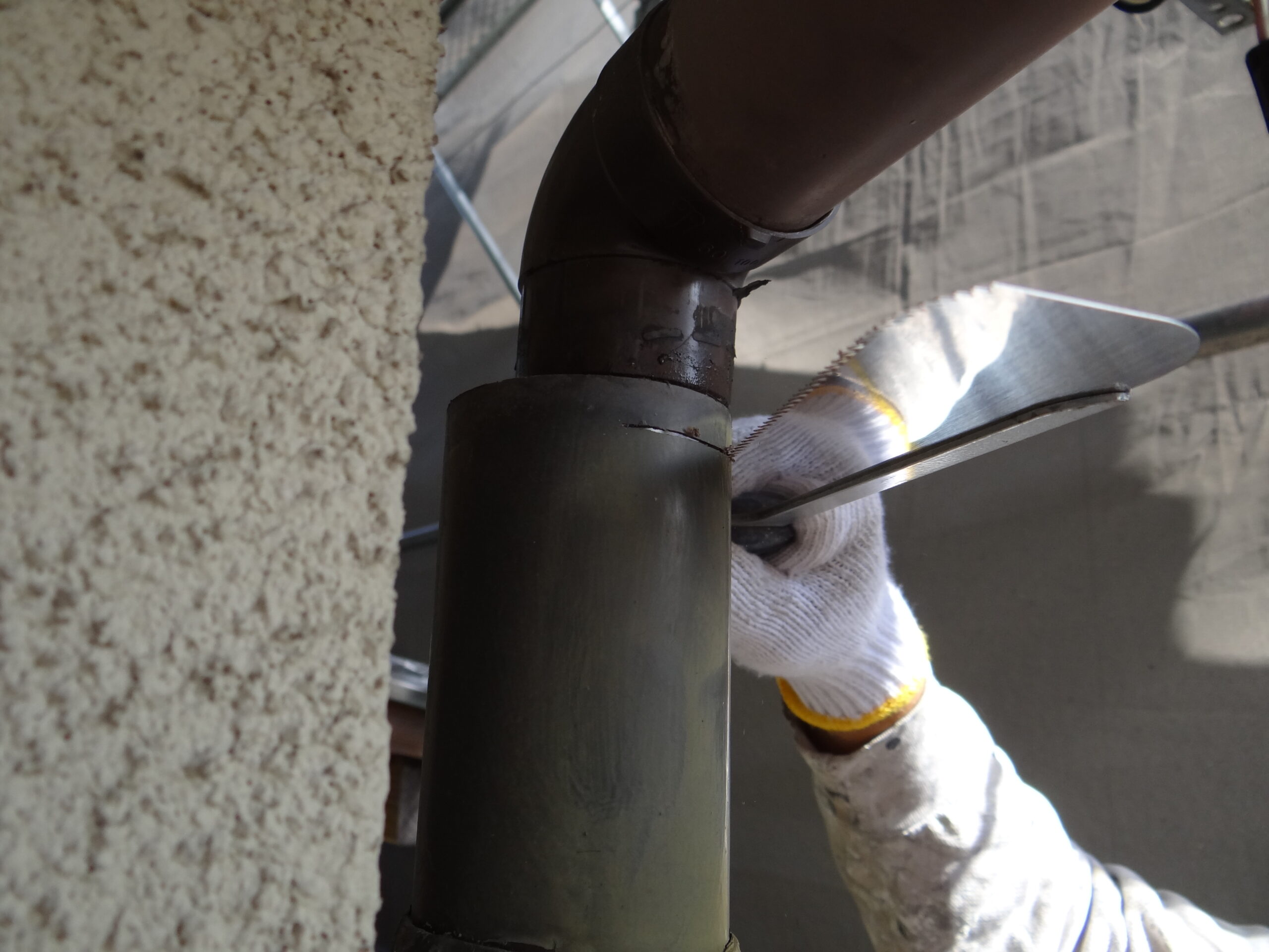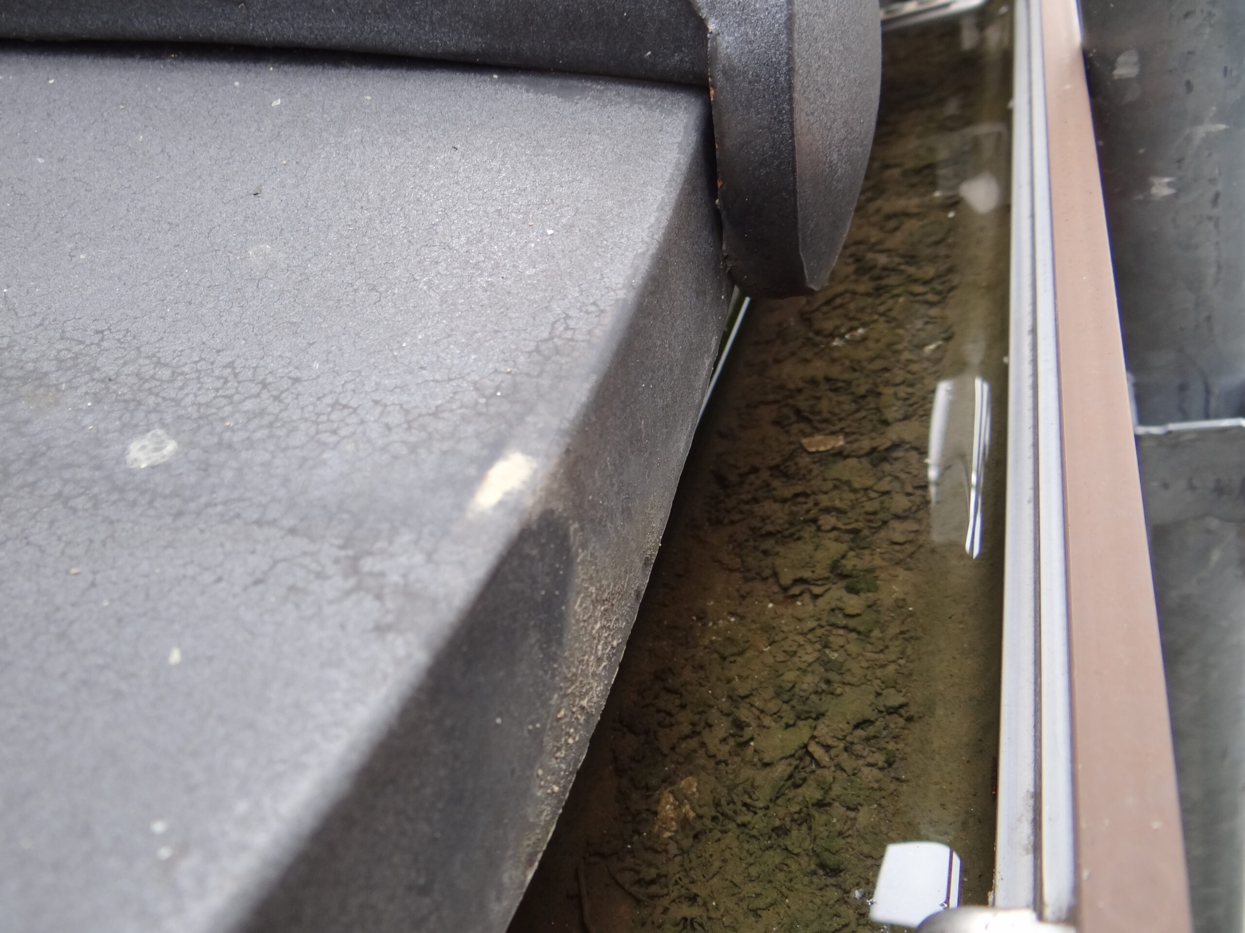 軒樋の勾配が悪いので雨水が溜まっています。
