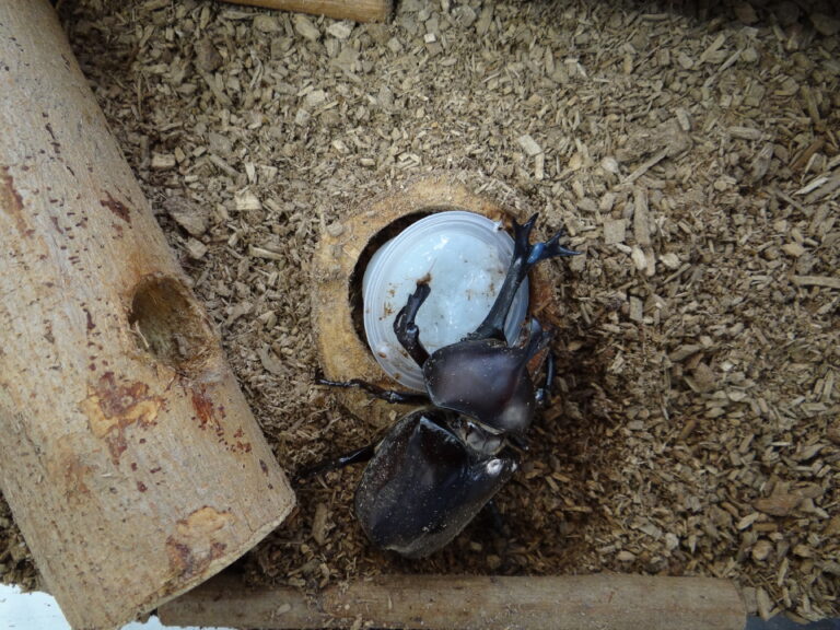 今朝、カブトムシのはっちゃん。なんとか元気でした。最近、ひっくり返って戻れない事があるので気を付けています。