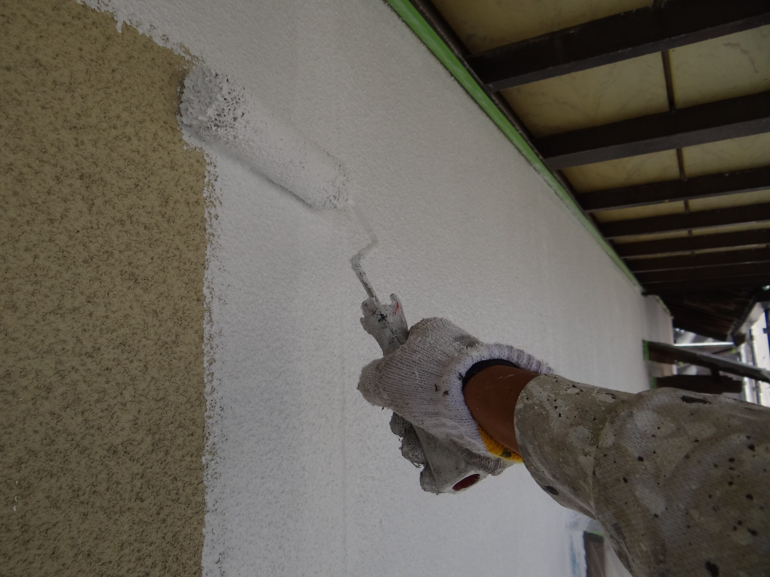 塗装工事は下塗りをコロコロ~としております。そんな気持ちのいい秋晴れでした。