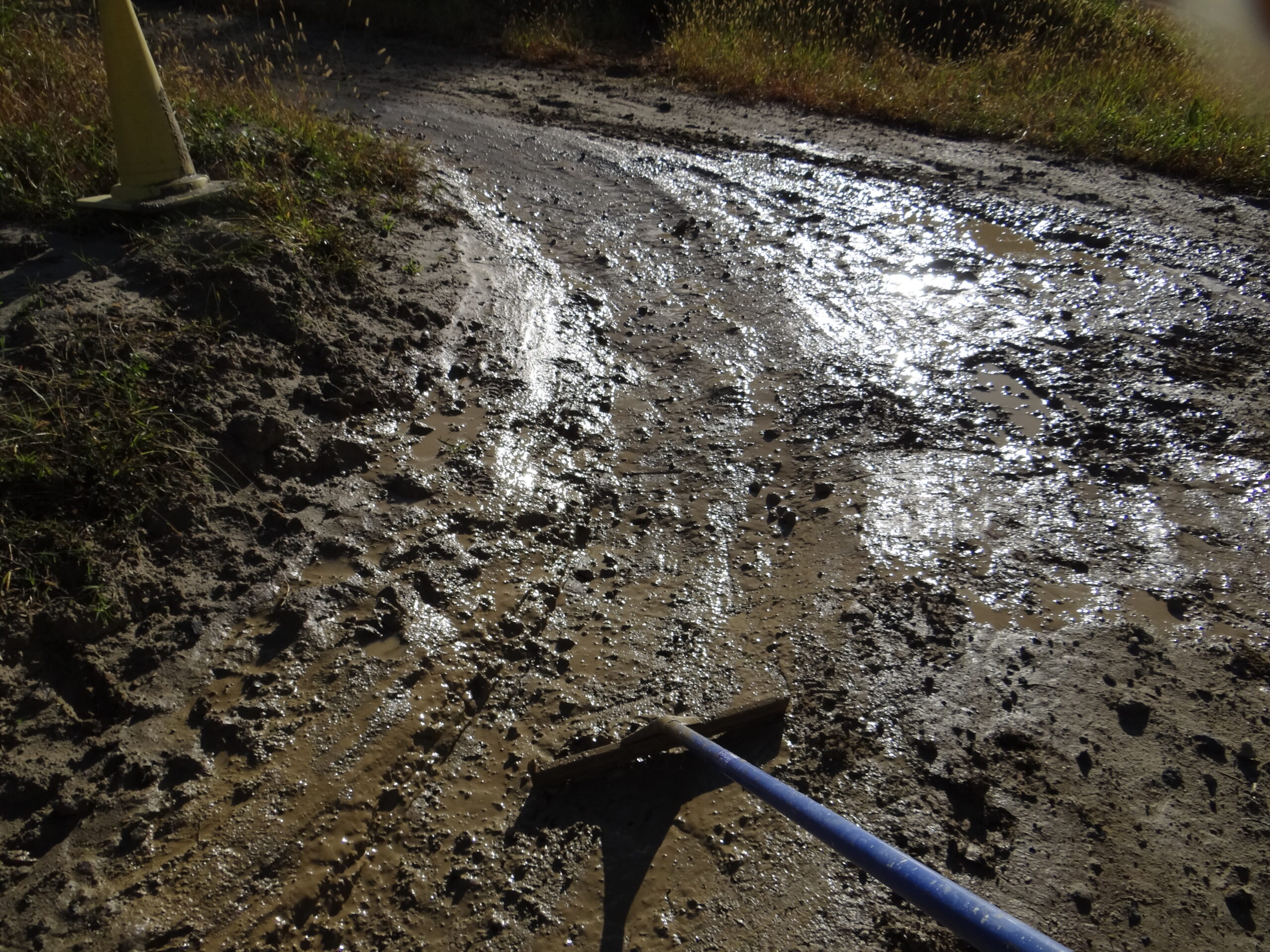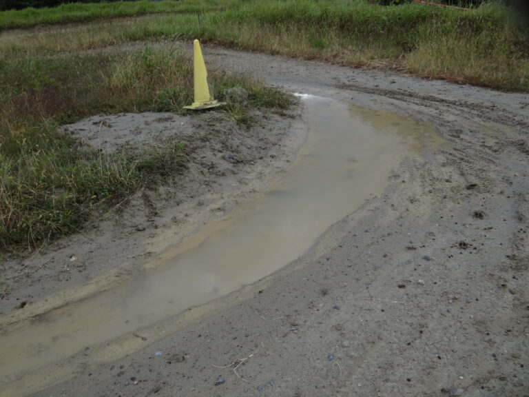 走行前のコースは予想通りの水溜り。
