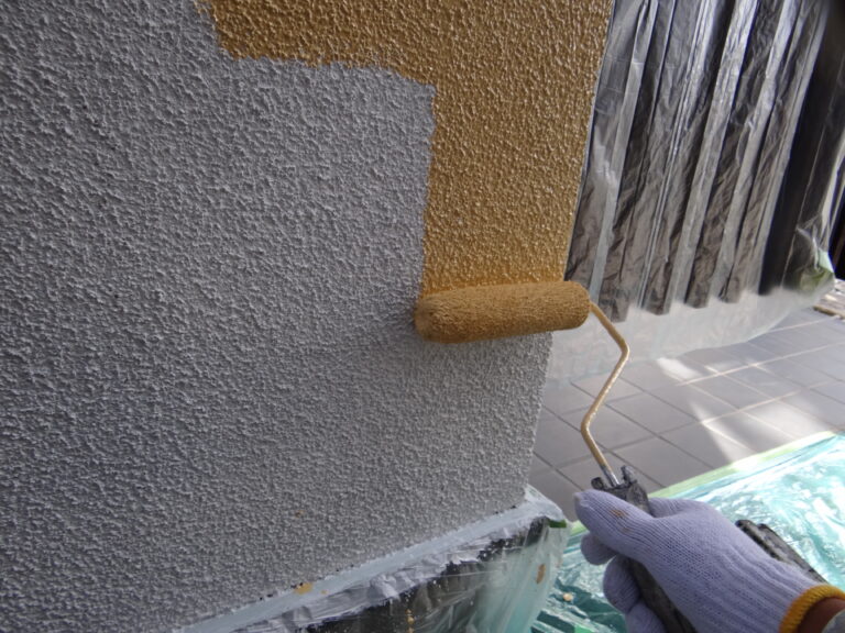 下塗りの後は上塗りの1回目、中塗りを行いました。天気もよく風もなく、塗装を行うにはとてもいい日です。