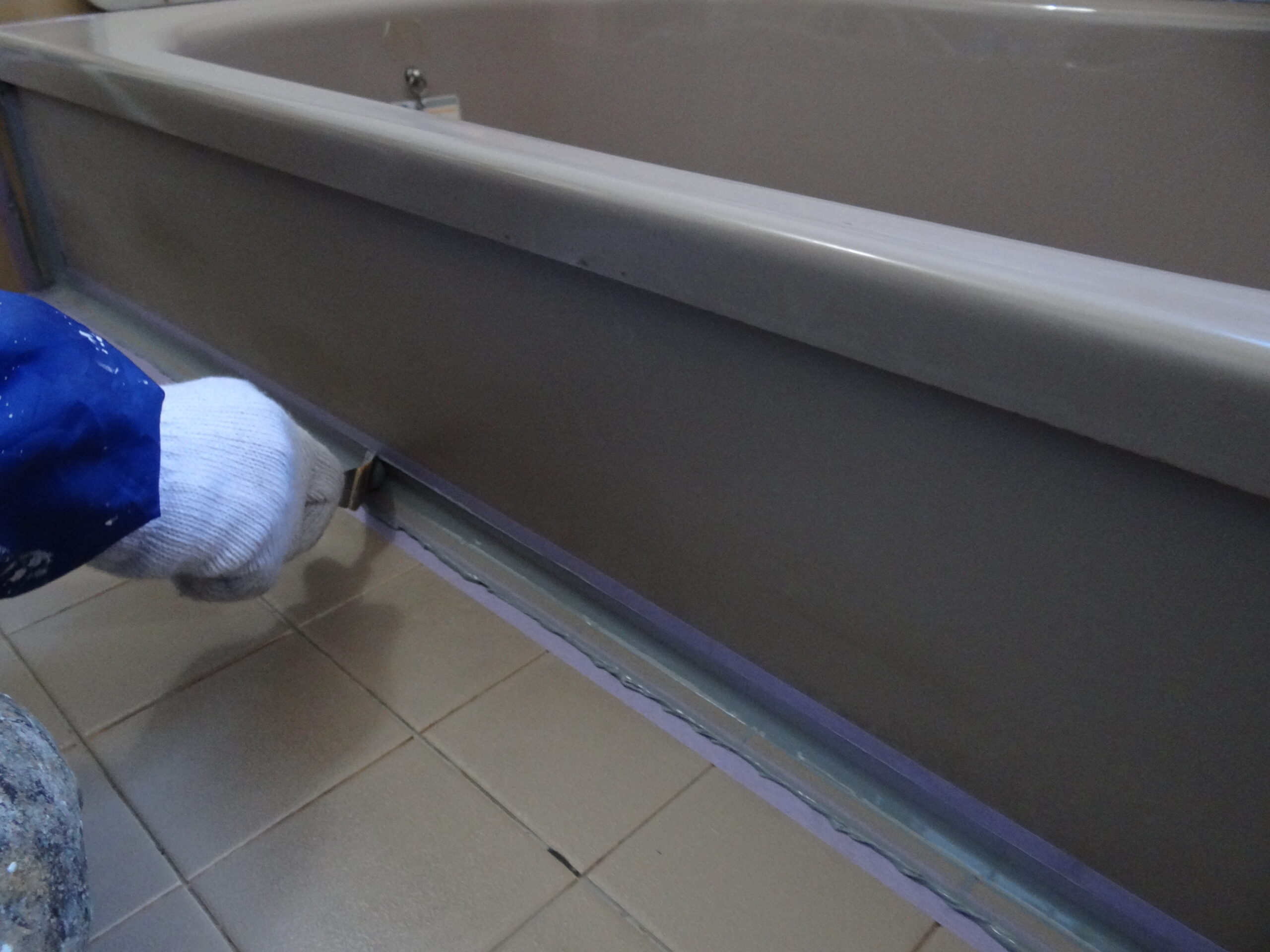 浴槽まわりのシールも打設。
