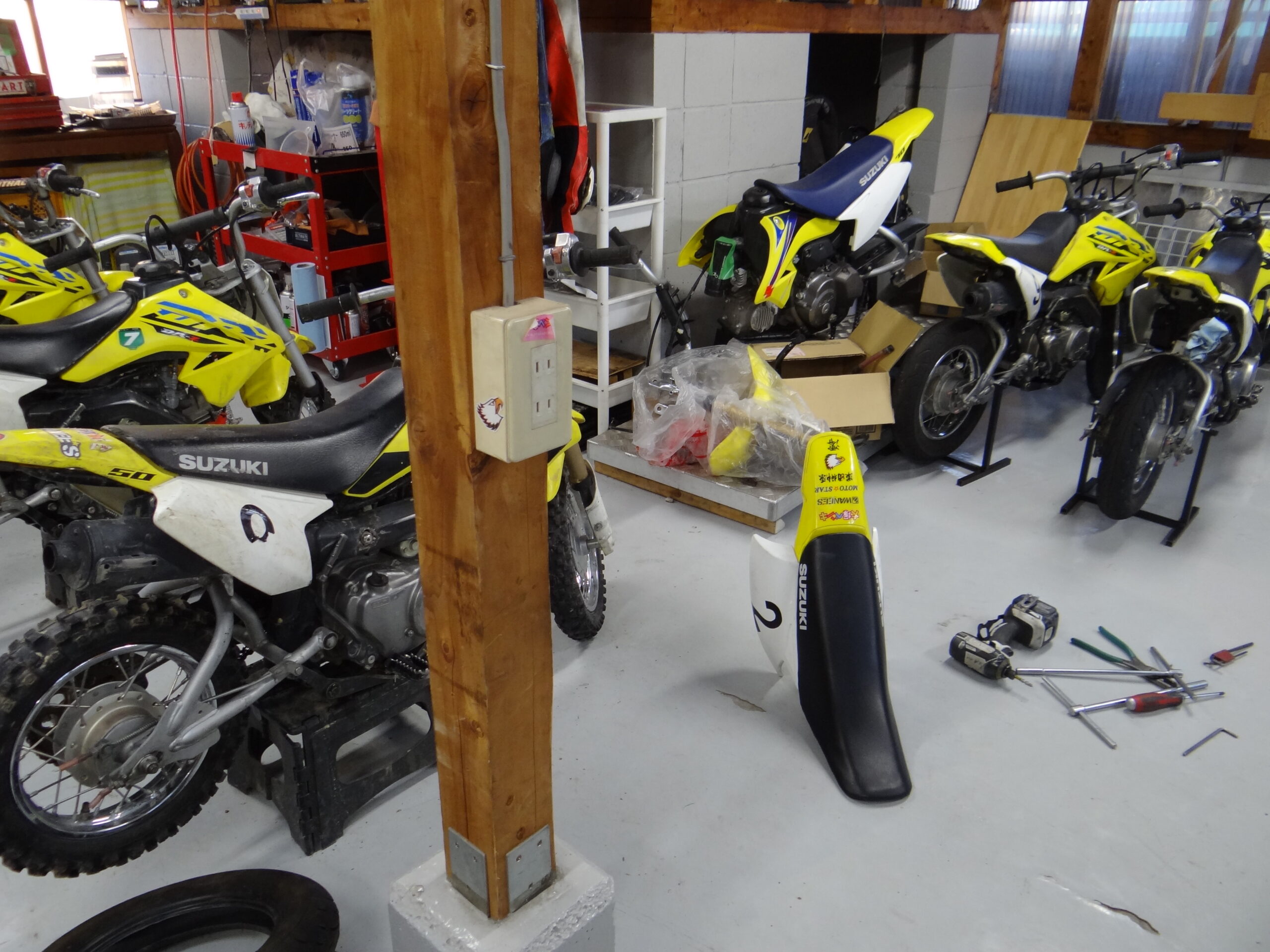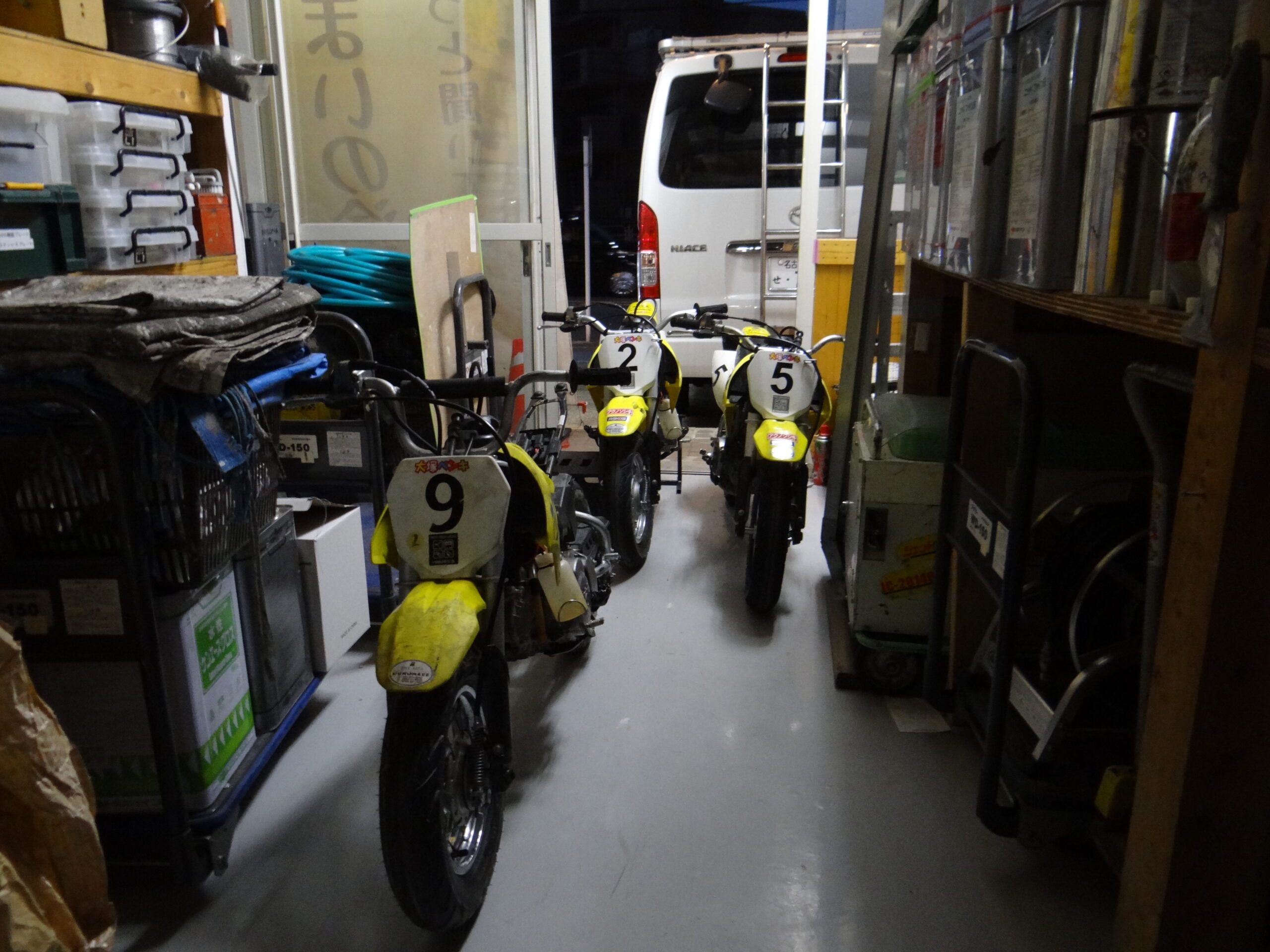 帰宅後はチビ達のバイクの整備です。明後日の走行を安全に走れる様、しっかりと。
