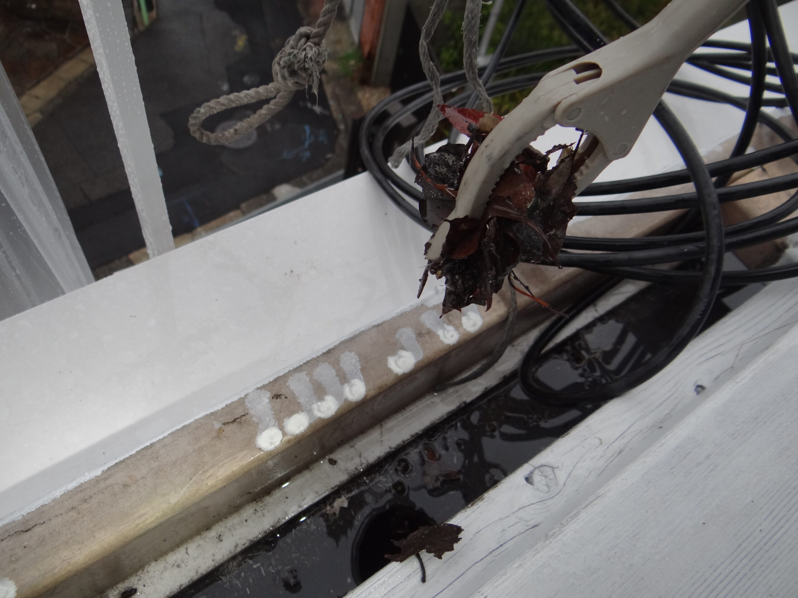 そんな感じで帰宅後、今度はまた雨漏りのご相談です。今回は排水ドレンの清掃及び洗浄で改善しました。ホント、よく降る雨ですね。