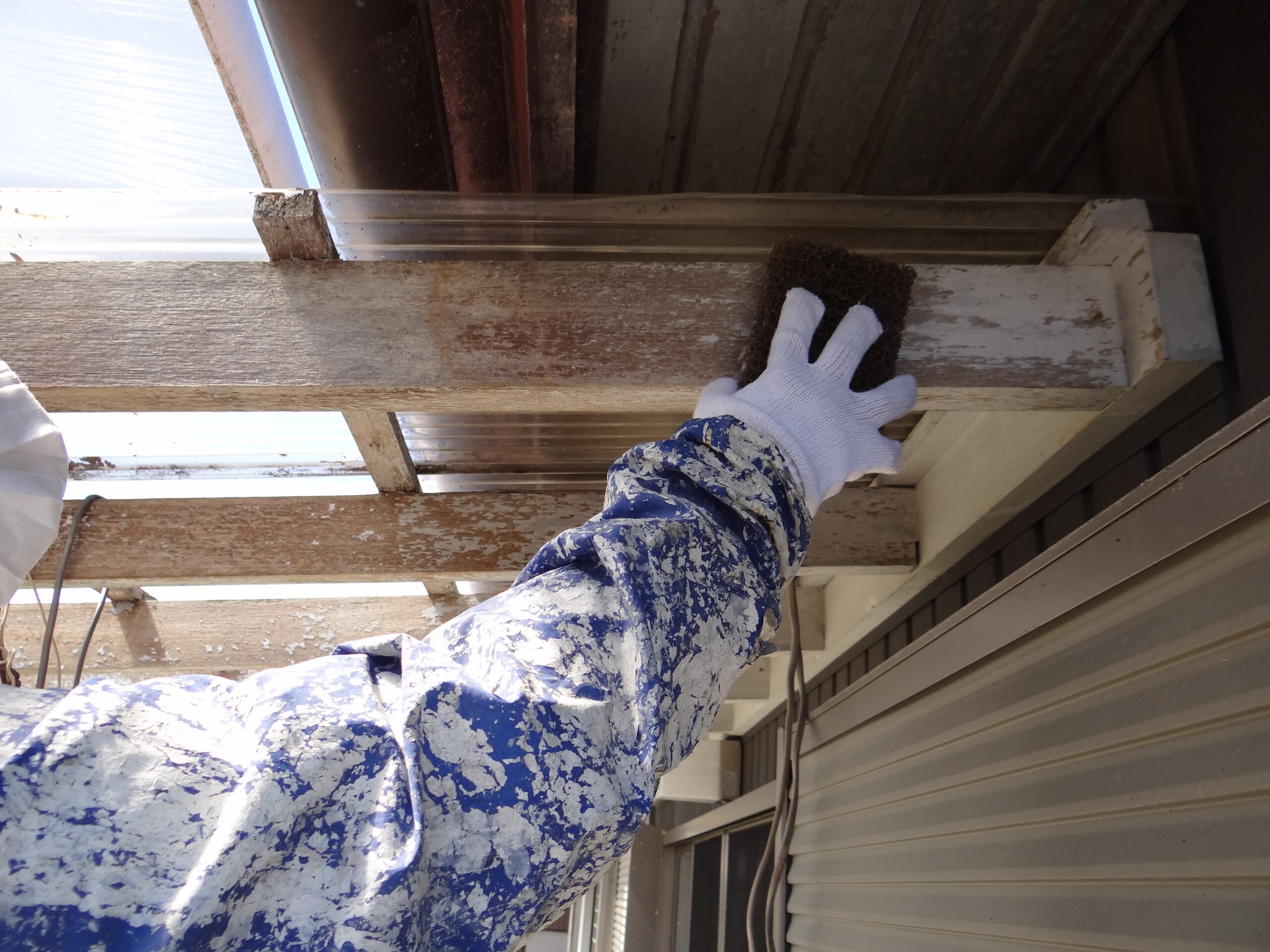 午後からはこれまた、よーやく晴れたので木部塗装。まずはケレンです。