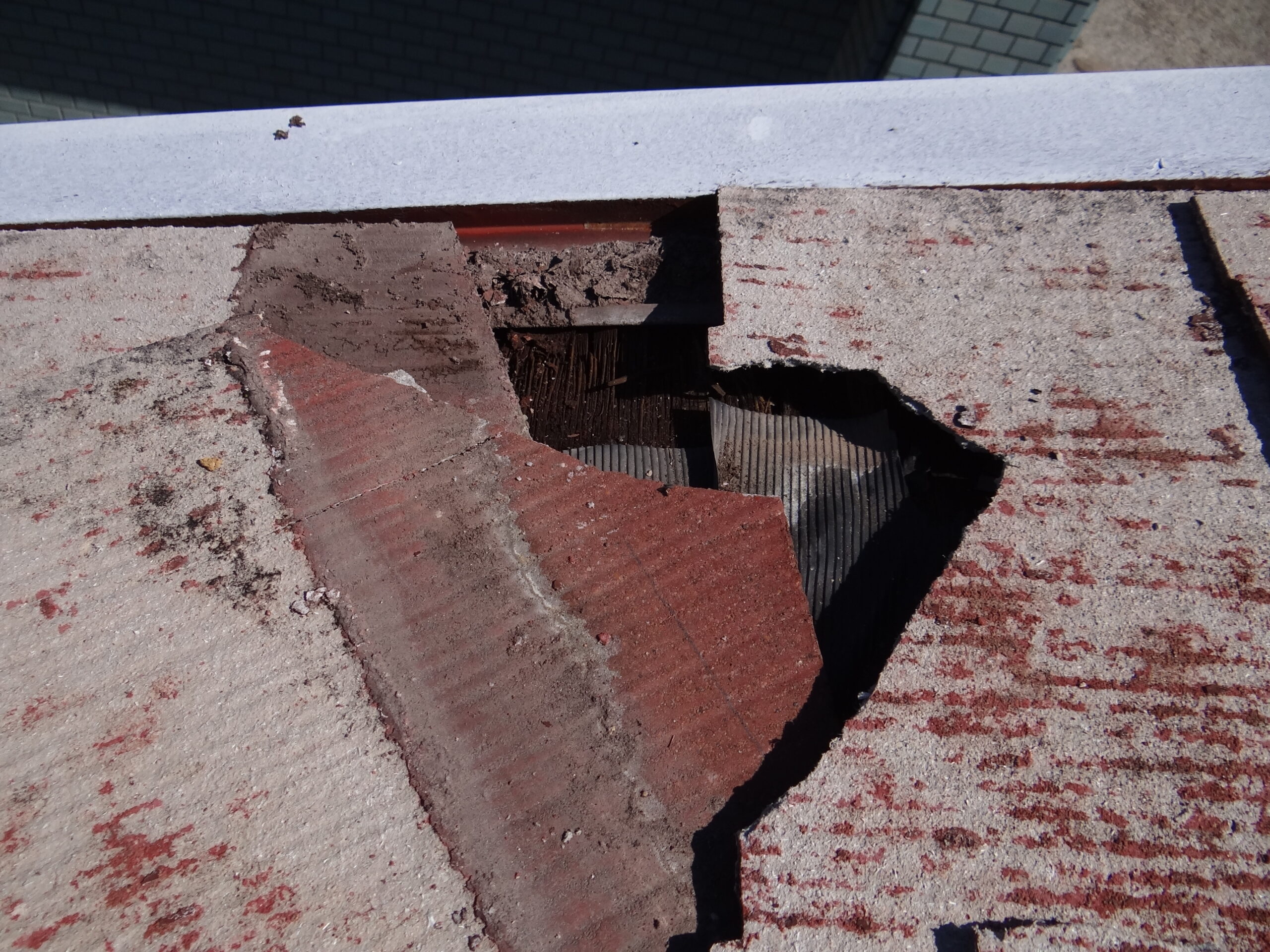 よーやく雨が止んで晴れました。でも明日の夕方からまた雨なので、まずは雨漏り対策から行います。屋上から、ゆっくり、しっかりと確認。