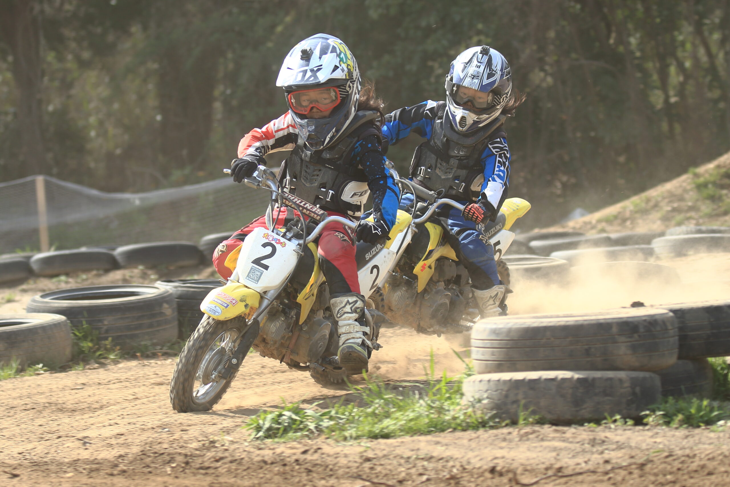 さー君たちのバイクでも元気よく練習です。