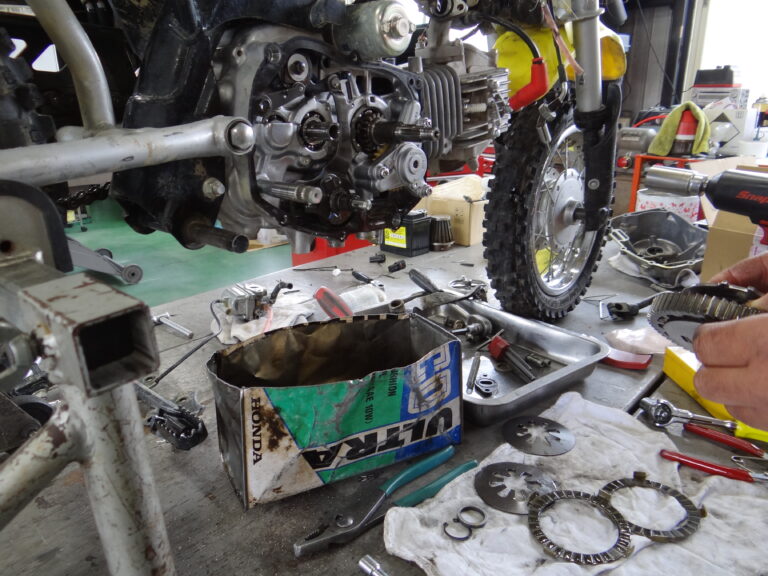 ここ最近、スパルタ特訓で歯を食いしばり頑張っている三男君へのプレゼント。クラッチ・ピストンリングの交換にバルブなどの清掃。今度の走行は、これでお兄ちゃん達と戦うのだ(笑)