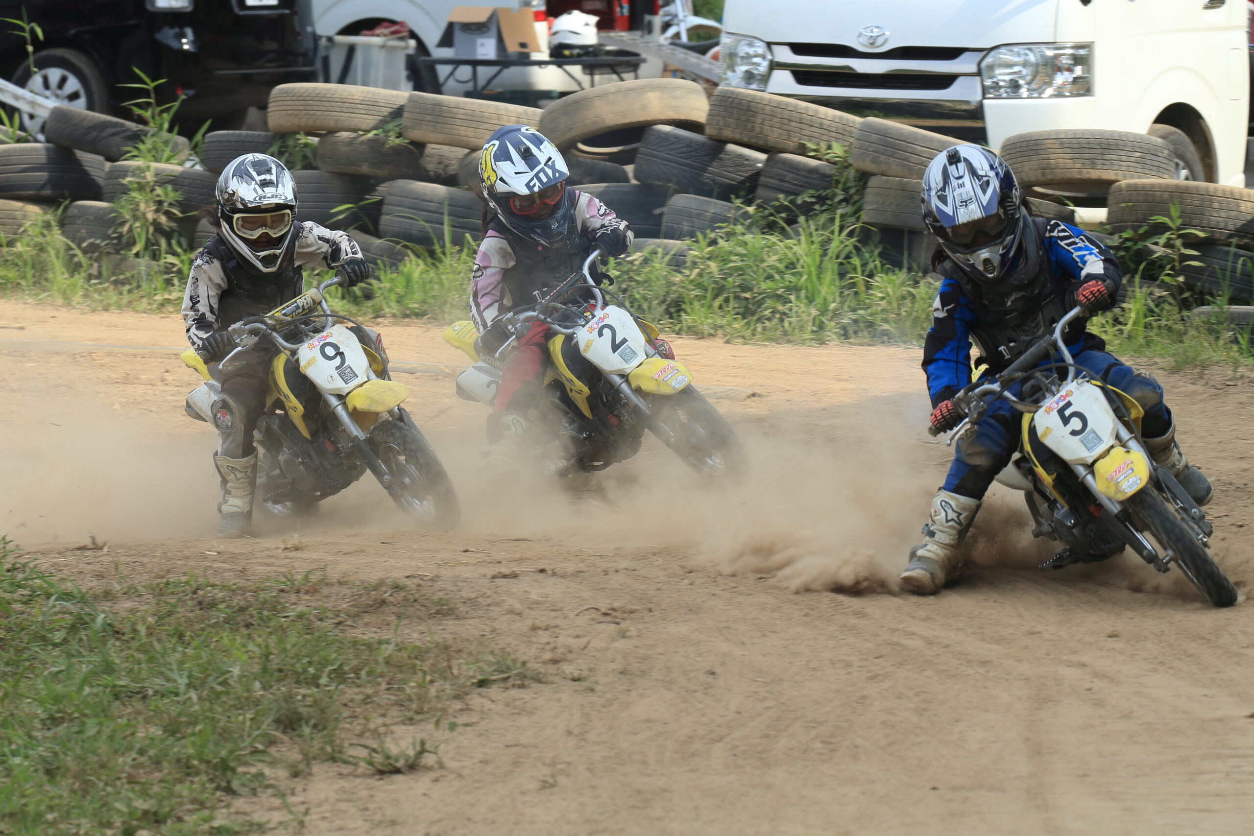 三男君のエンジンは絶好調。遅いエンジンで頑張ってたかいがあり、よーやくお兄ちゃん達とピッタリと走れました。