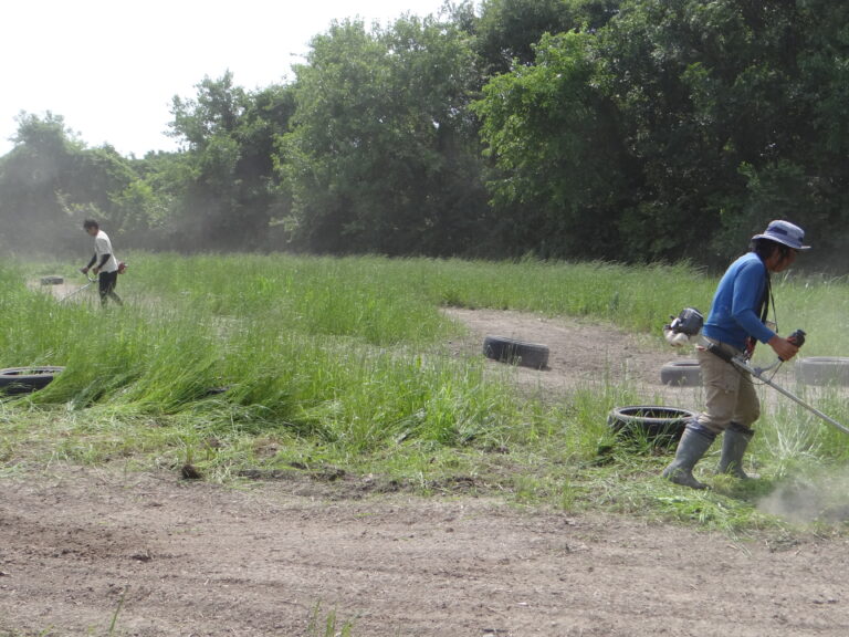 練習です。の間に、違うコースの草刈りもしておりました。皆でコースレイアウトなどを考えたりせっせと作業。