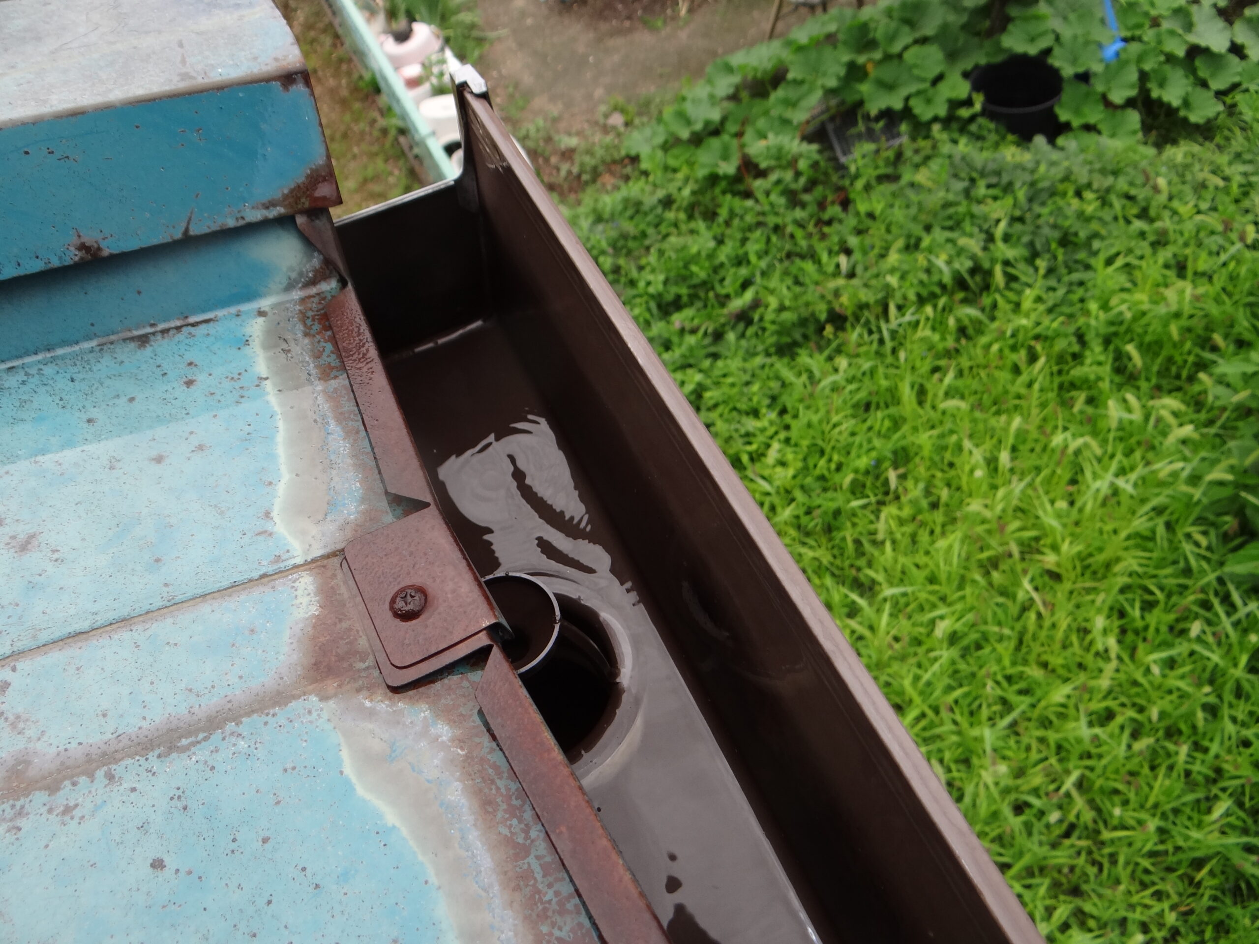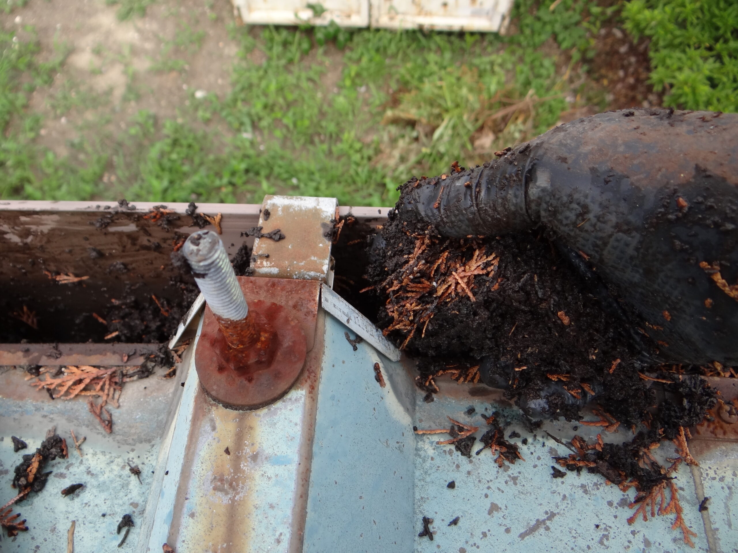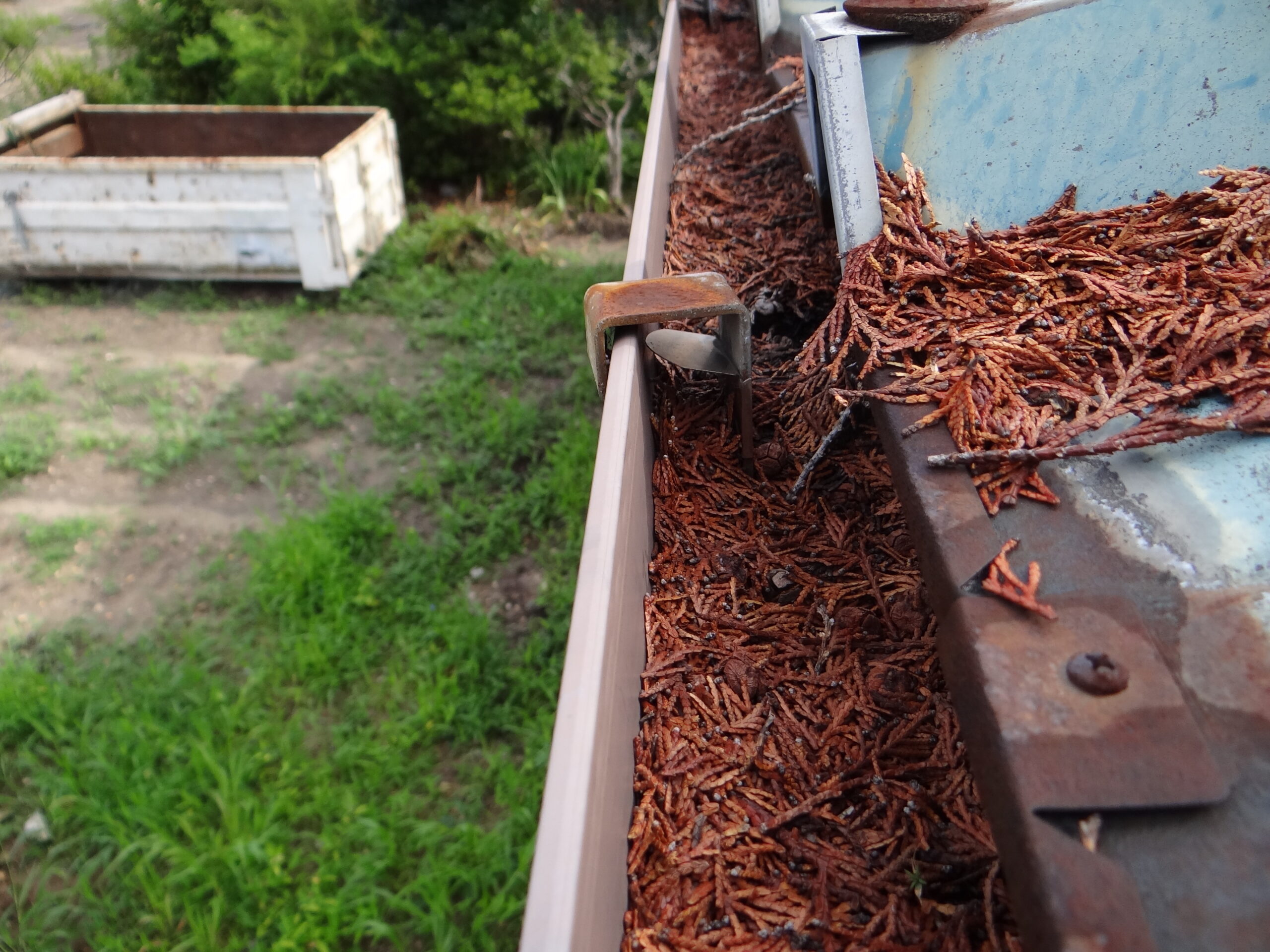 軒樋はプランターみたいに土もしっかりと堆積しています。