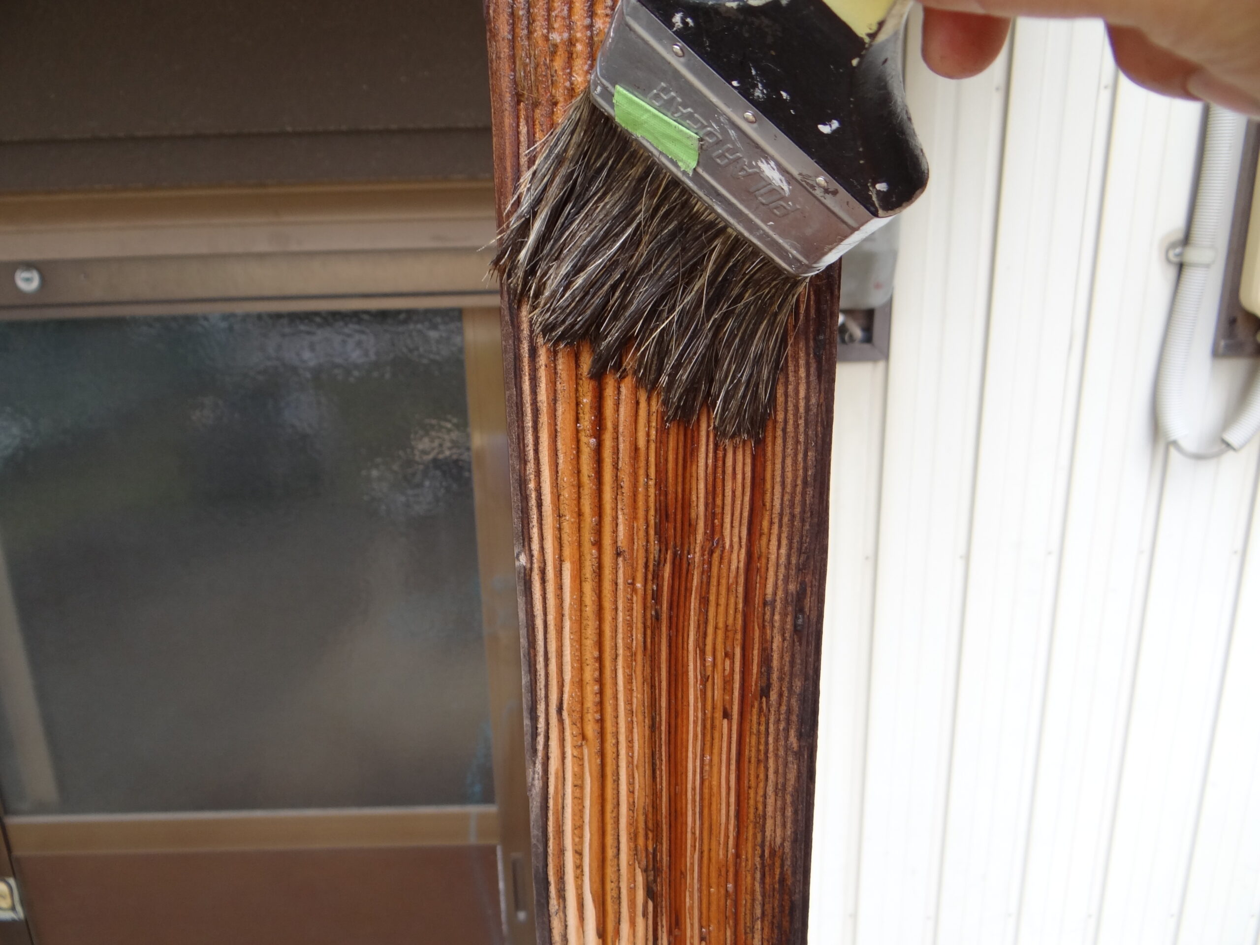 木部の柱も漂白完了。そんな洗浄している日です。