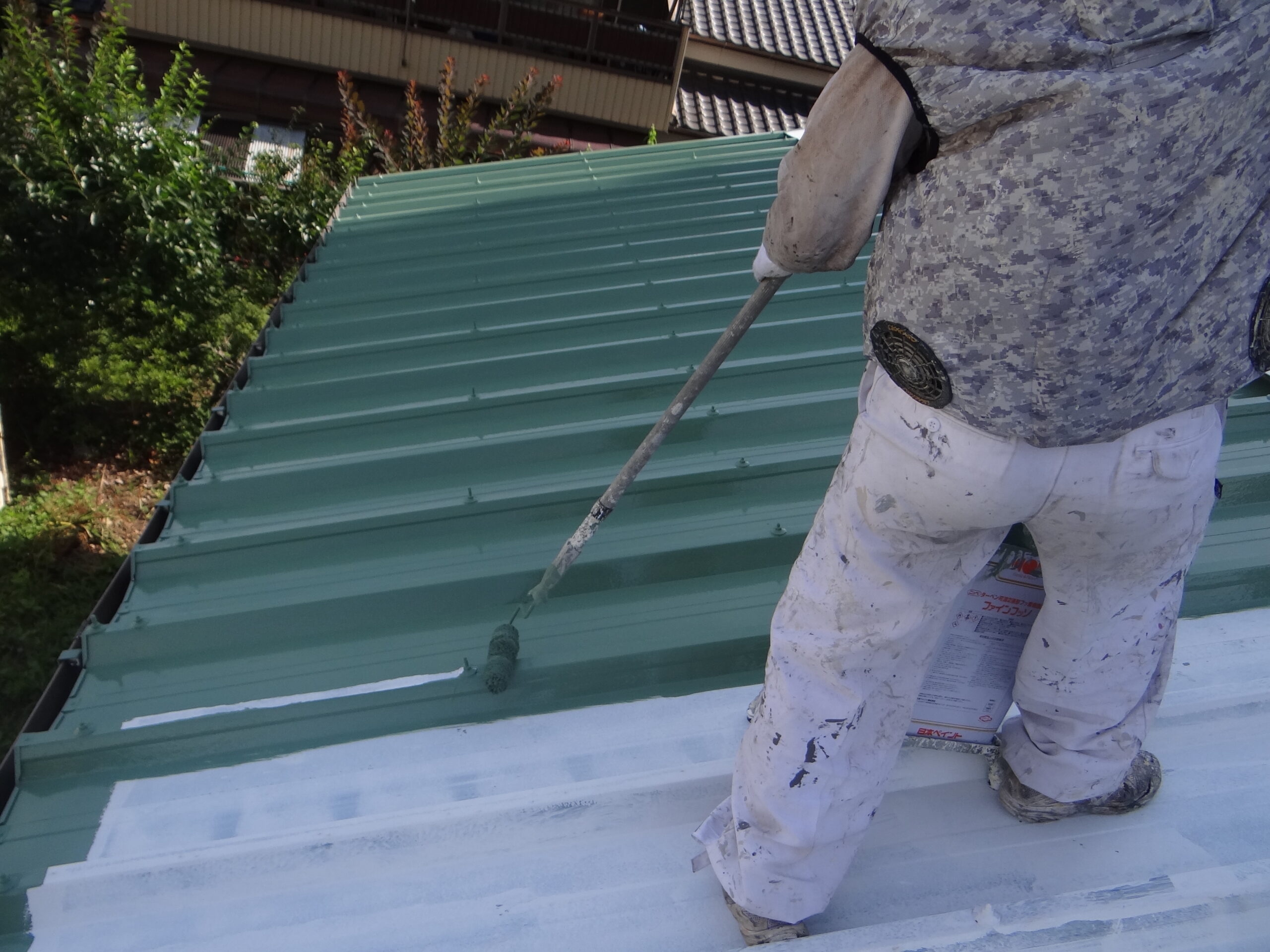 屋根の上塗り1回目。