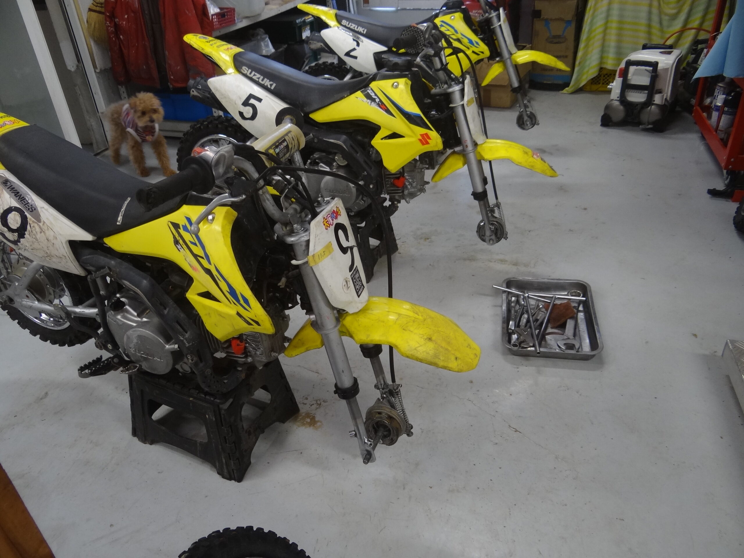今日は雨戸の養生をして、3回吹き付けて完了。帰宅後はチビのバイクの整備。リア廻りの後はフロント廻りを進めます。バラシて洗浄してチェック。もう睡眠不足。。。最近の夜はこんな事ばかりしています。