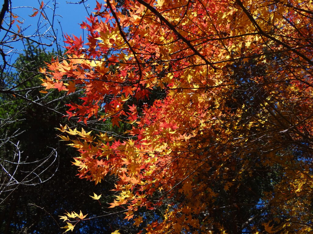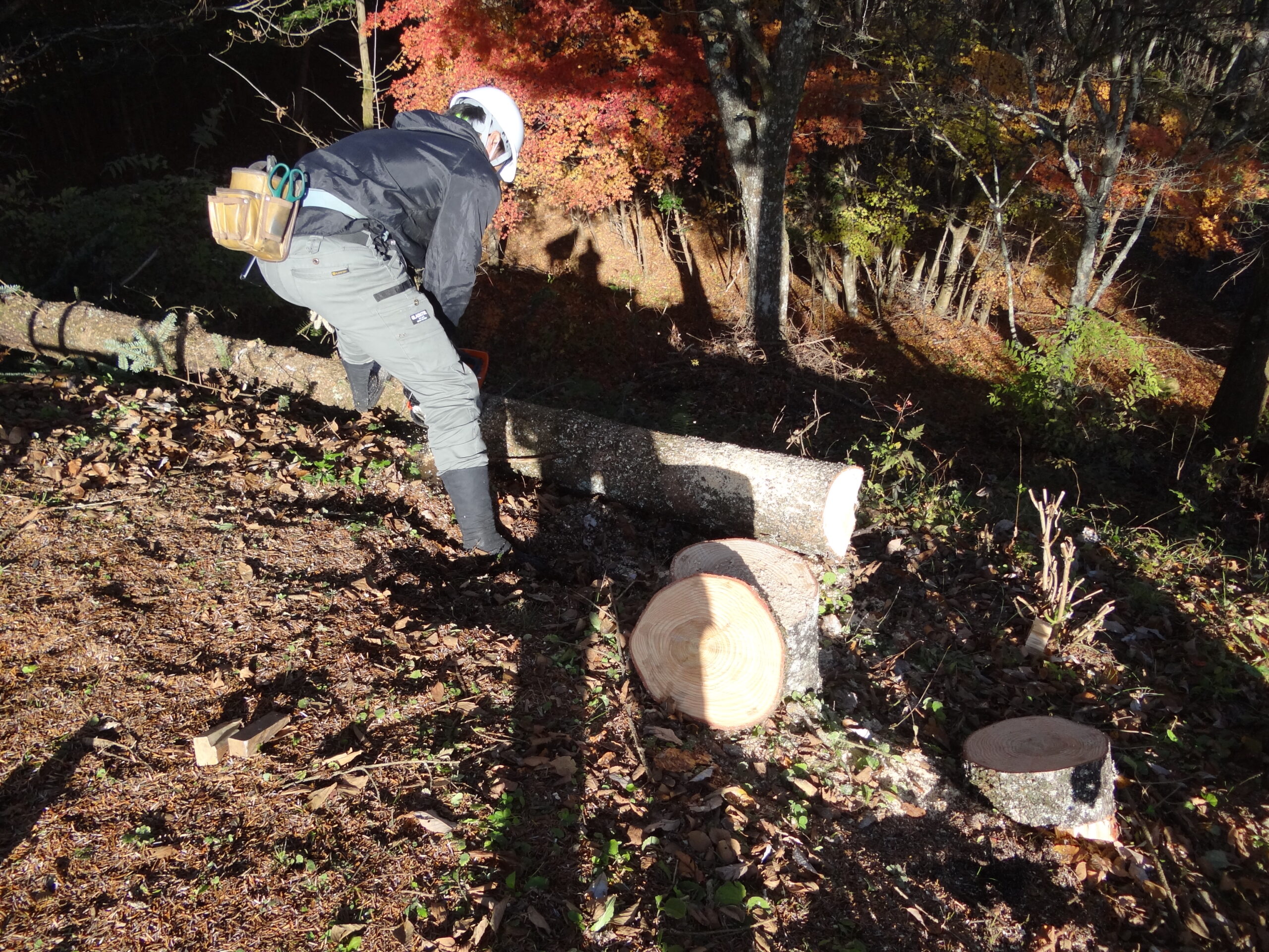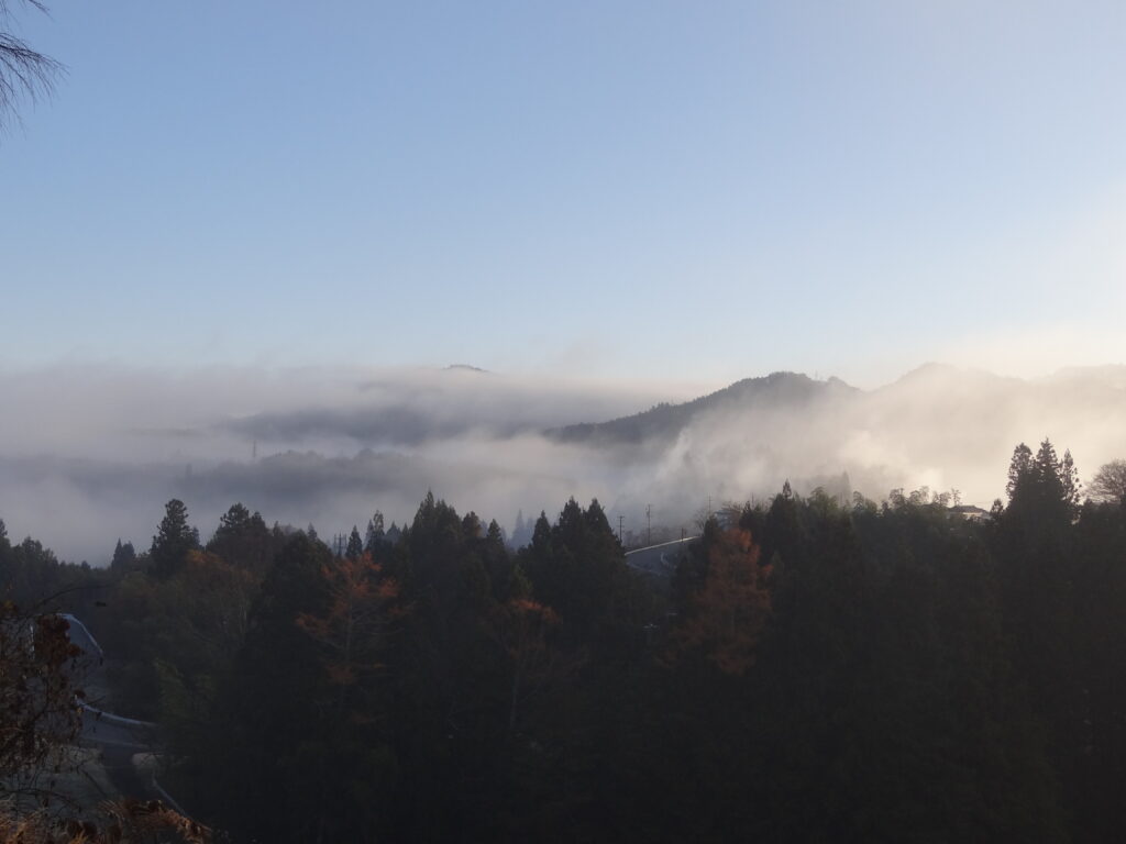今日は少し早く現場へ到着。雲海っていうんですかね?取り合えず景色がとてもキレイでした。そんなキレイな景色を眺めながら木の伐採や、雨漏り対策を進めていたのでした。紅葉もキレイでしたね。