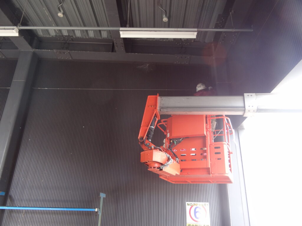 今日は高所作業車で施工です。よーやく冬らしく寒くなってきたので、パッチを履きました。これで春まで脱げそうにありません。