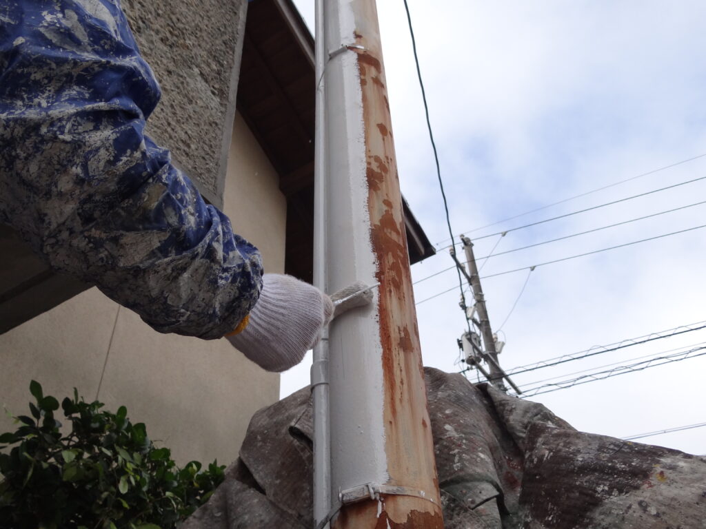 今日はポールの塗装です。しっかりとケレンして錆止め・上塗り2回塗って完了。