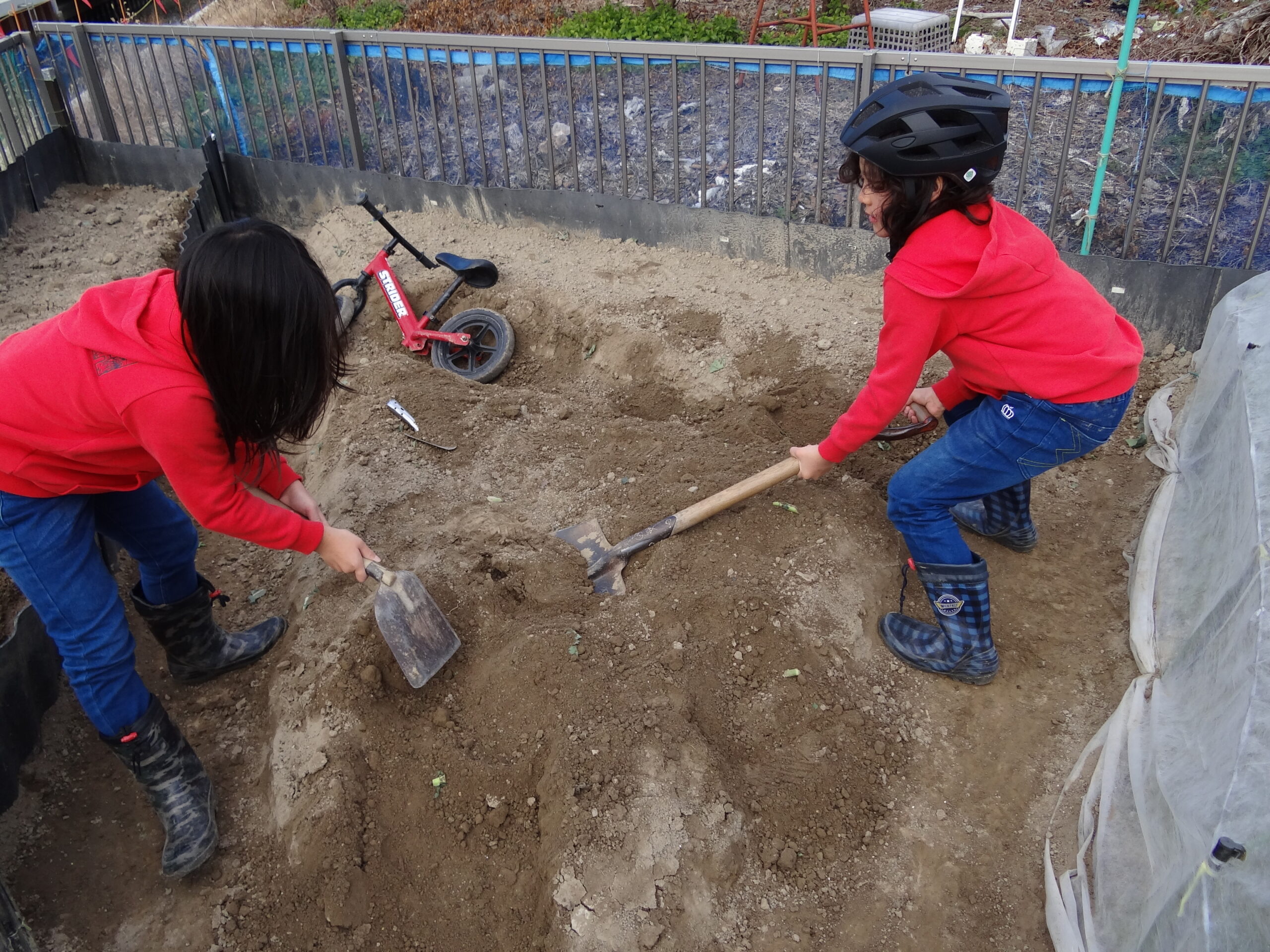 じいじの畑でモトクロスコース?を作ったり、