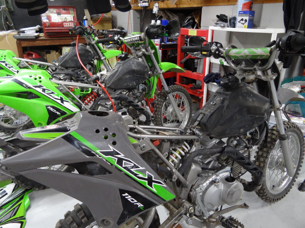 少し早く帰宅したのでチビ達のバイクの整備を進めます。次の走行も安全に力を出し切れるよう、しっかりとチェックです。