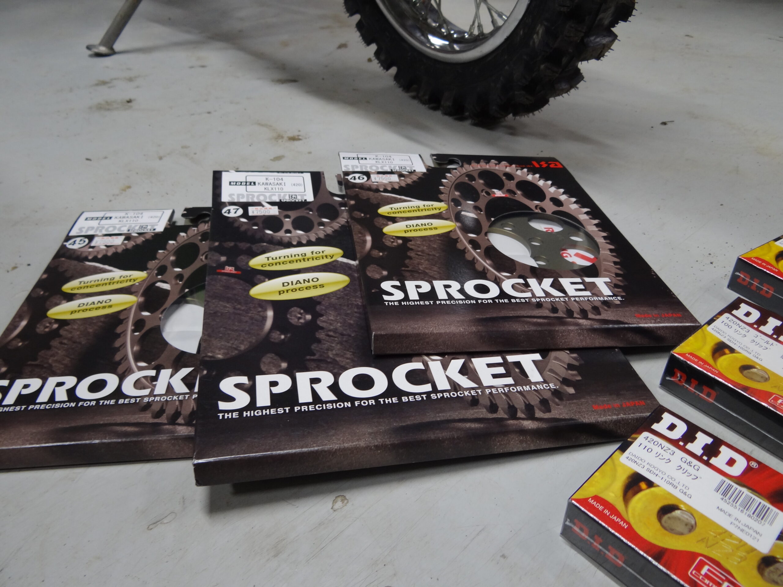 帰宅したのでいつもの夜な夜な整備をはじめましょうかね。モトスペースさんに頼んでいたスプロケが届いたので楽しみ~