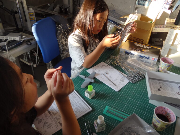 夏休みもあと僅かになりました。まーお盆を過ぎても昔みたいに涼しさを感じません。。。そんな日ですが、事務仕事の傍らでチビ達はプラモデルの制作です。初めてセメダインを使ってのプラモデル。まずは組み立ててみましょう。それから色を合わせたり、塗装のお勉強をさせてみようかな?