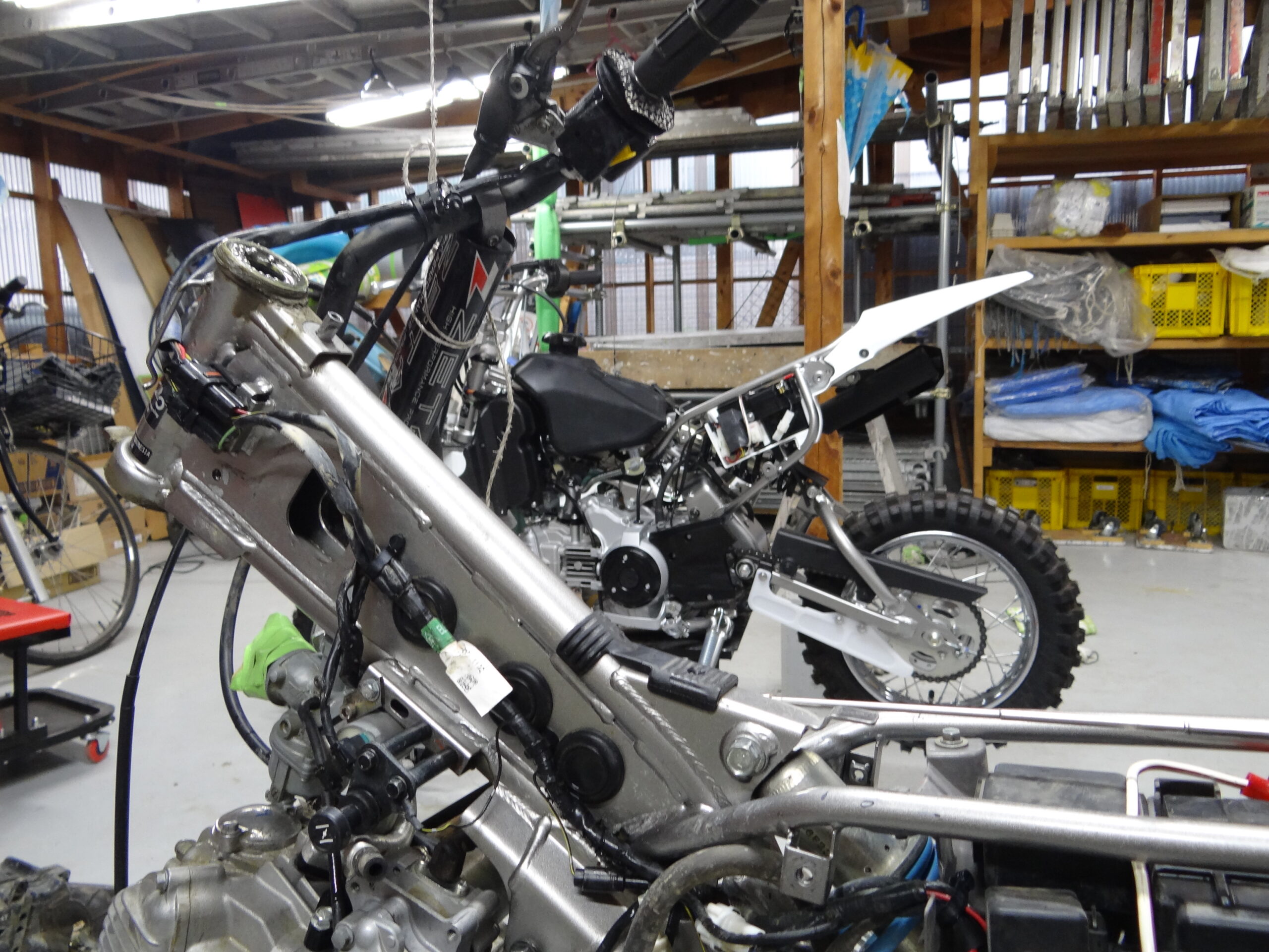 少し早く帰宅したので整備です。先週の全日本モトクロスを観戦して、かな~り刺激を受けたらしく気合十分の3兄弟。ならば、しっかりとマシンチェックです。って言いながら、ばぁばの家へ遊びに行っている3兄弟。。。お邪魔虫がいないので整備がはかどります。