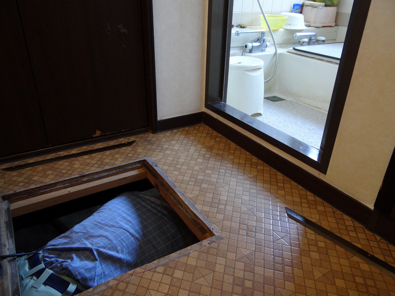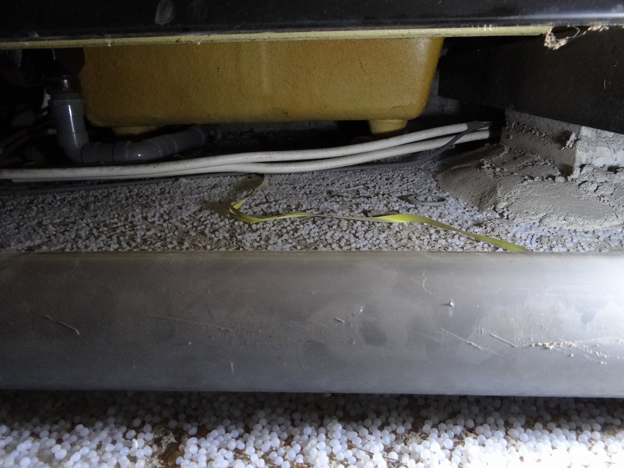 この配管を切らないと体が入りません。。あぁ狭い。
