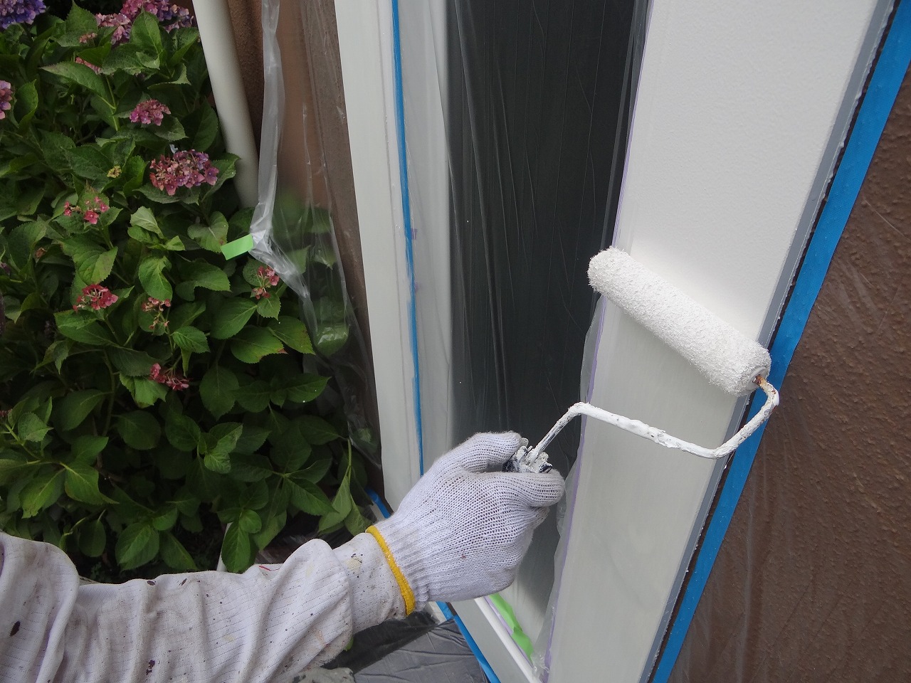 窓枠の補修、塗装を行って、