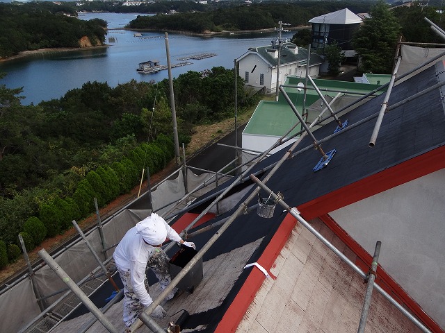 今週は志摩市へ外壁塗装工事を行いに出張しておりました。御施主様の期待に全力で応える為に、まずは高圧洗浄をしっかりと。