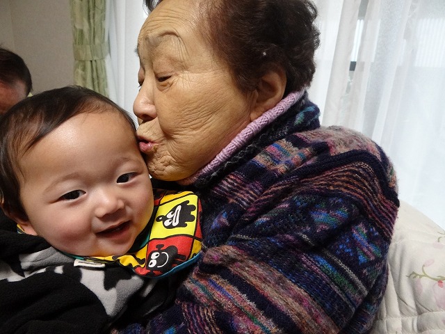 お婆ちゃんのチュ~にはおチビもご機嫌です。。。