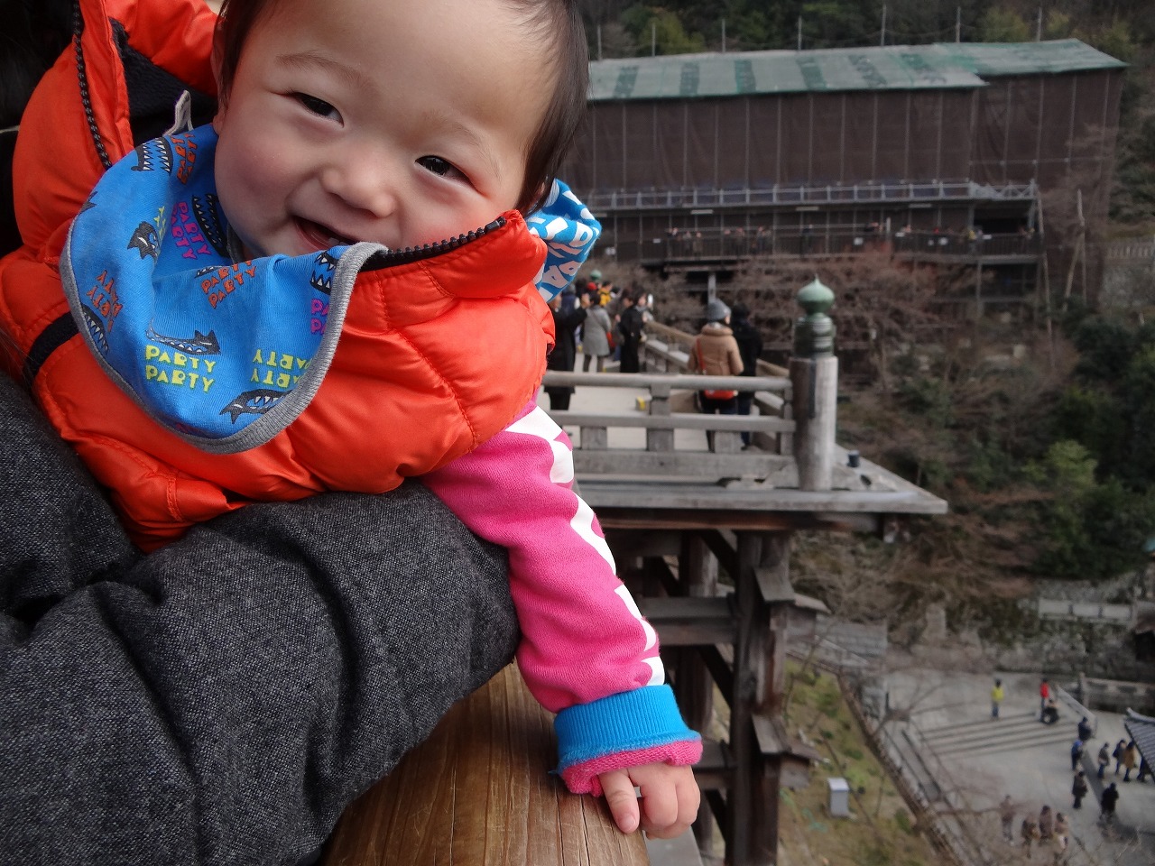 今日は家族と一緒に京都の清水寺に行ってきました。前に来た時はおチビはお腹の中でしたので今回で2回目なのかな?とりあえず、恐る恐る下を眺めておりました。