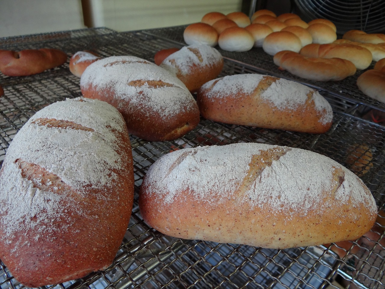 お昼ごはんは焼きたてのパン。ここ最近、ペンキ塗りながらパンの焼き上がるいい香りがしておりました。