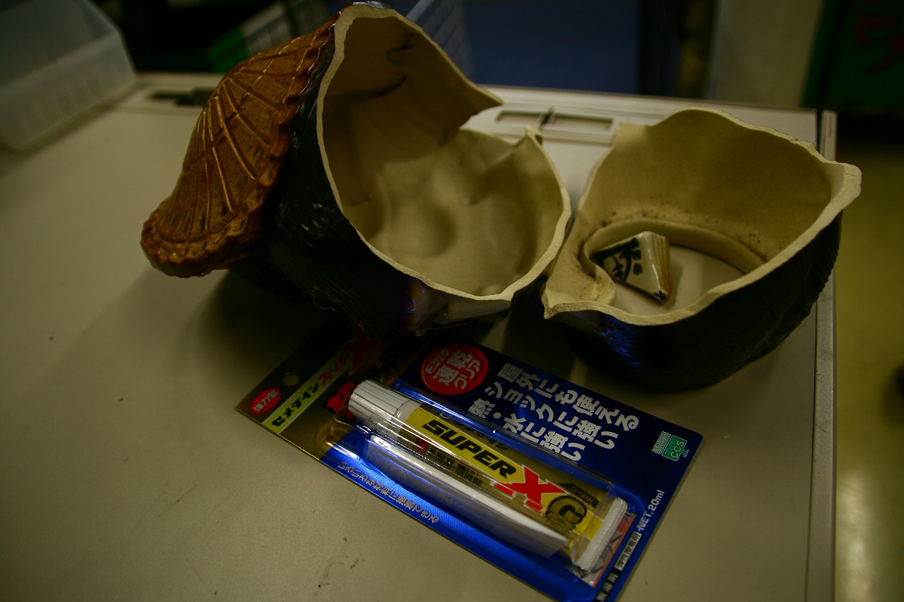 おチビがお婆ちゃんのタヌキの置物を割ったので