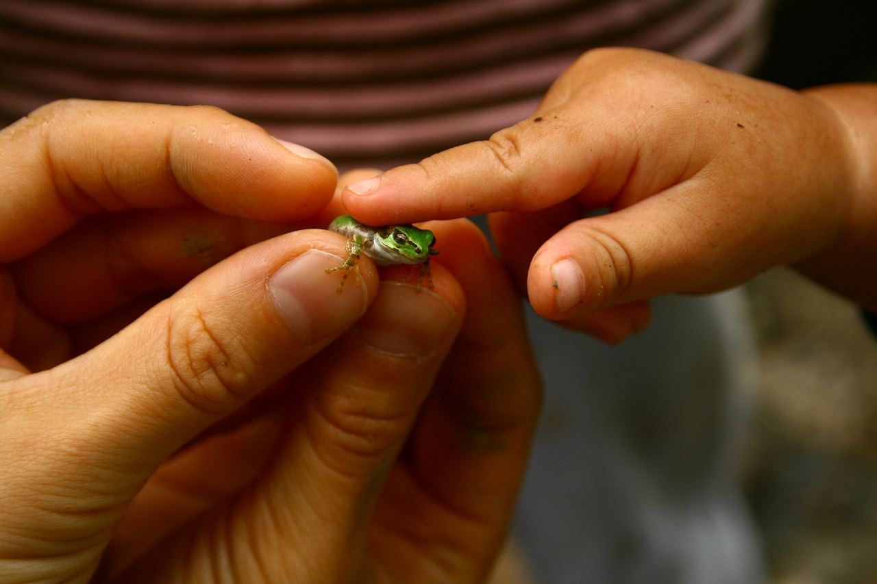 おチビ、カエルと初めての遭遇。