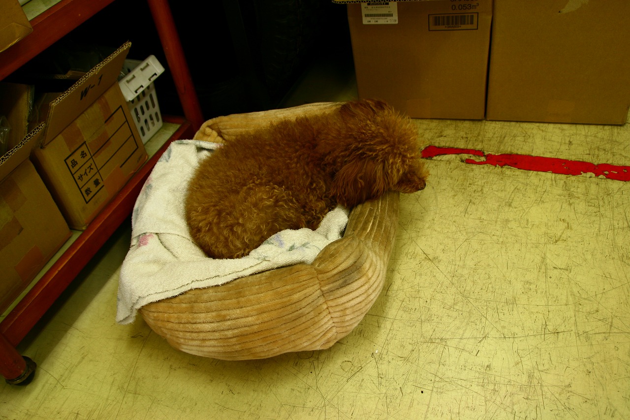 お犬さんは隣のバイク屋さんに入り浸り。