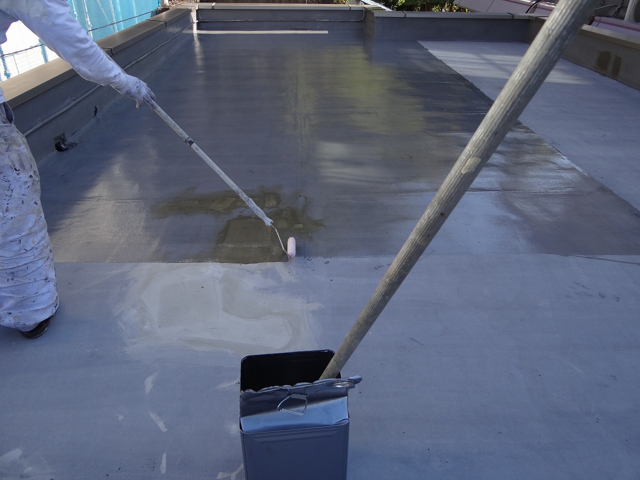 今日の防水工事はプライマーを塗って、
