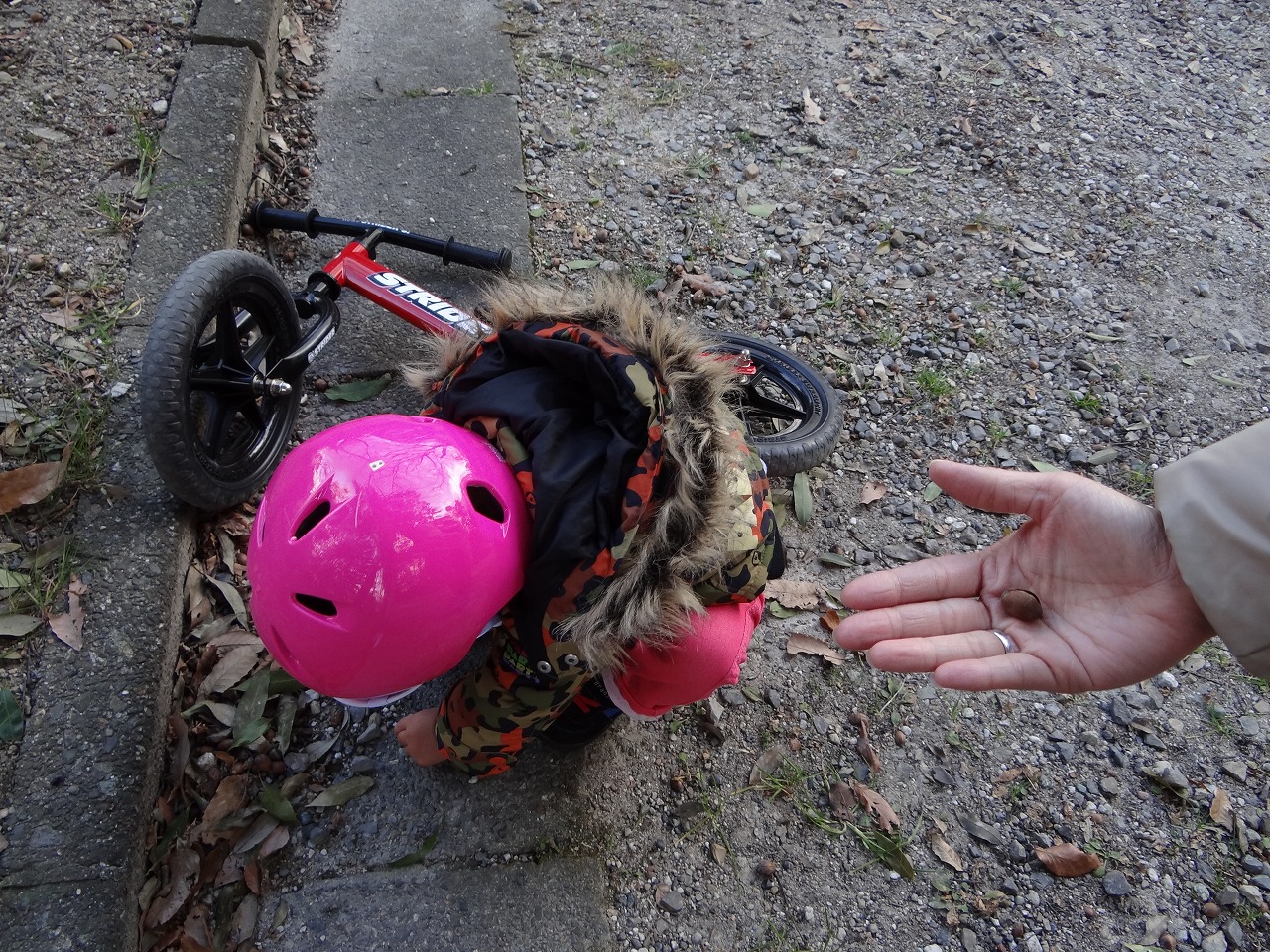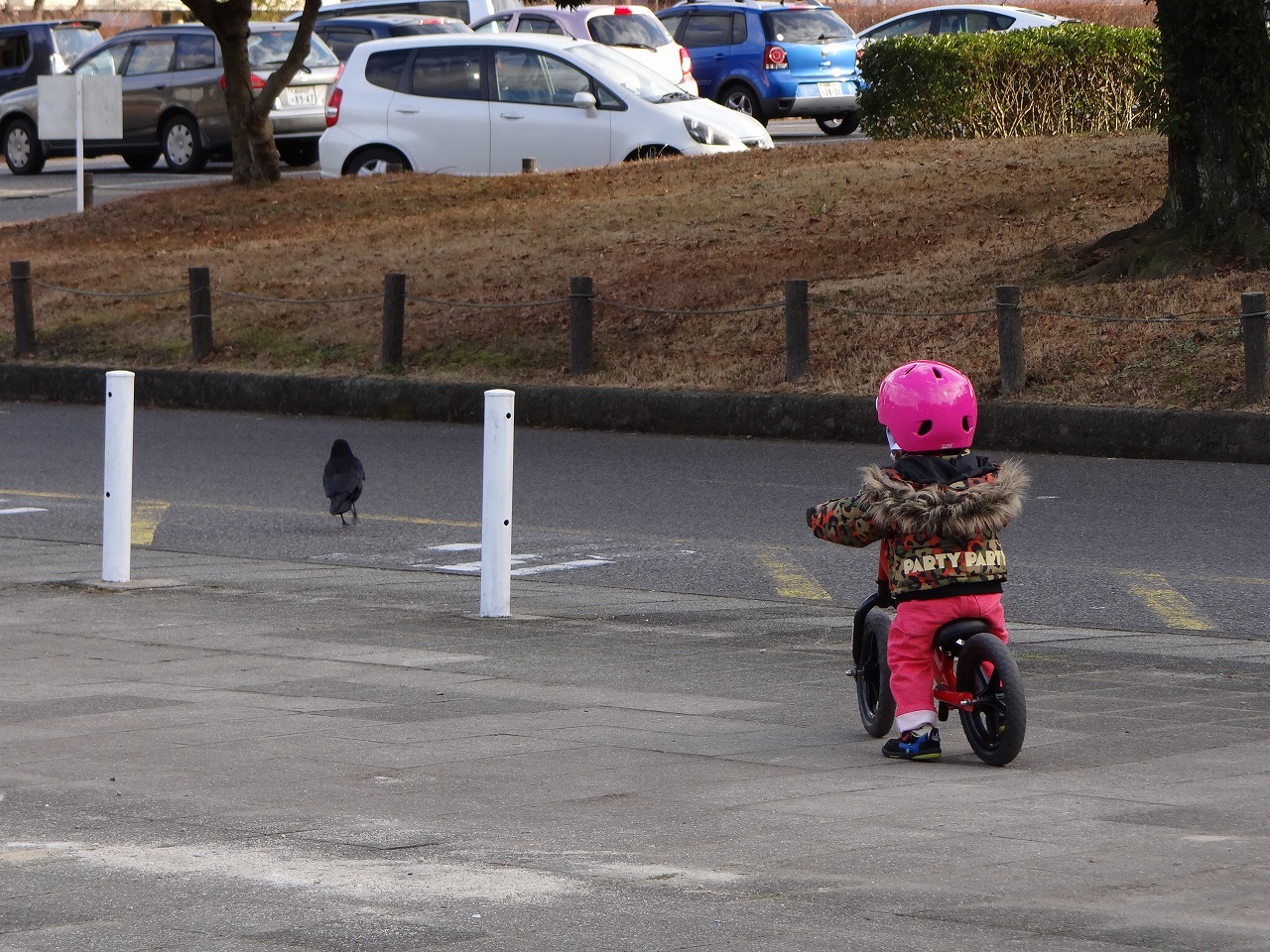 家の近所の公園でまたストライダー。でもカラスに気を取られ、