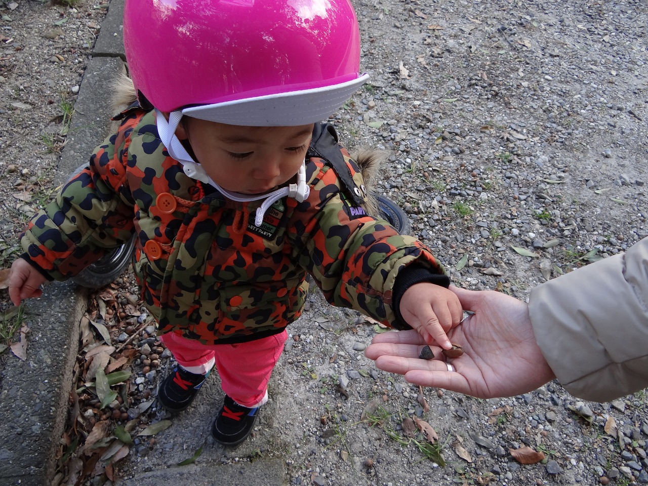 道端のドングリにも気を取られ、