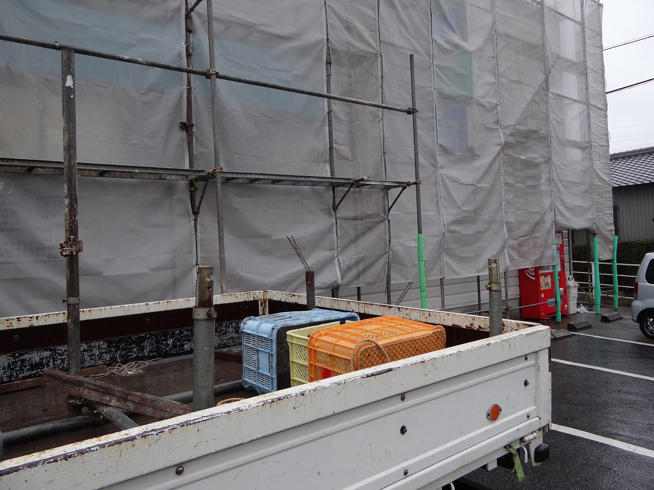 仮設足場の解体を行っておりました。