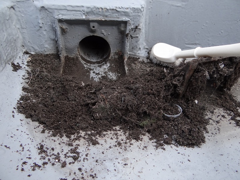 明日から始める屋上防水工事の現場にて、清掃、