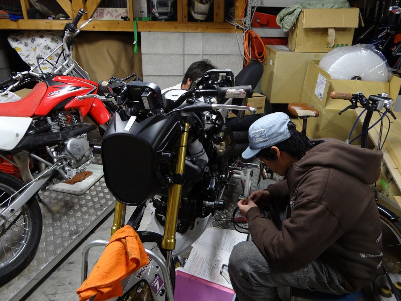 今日の屋上防水工事は昨日に引き続き既設防水シートの撤去、プライマー塗布などなど、帰宅後はグロムの夜な夜な整備が始まりました。22日の合同走行会に向け準備を進めます。