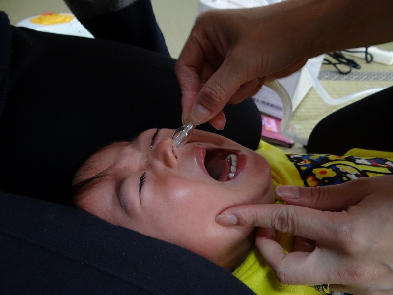 鼻水吸引器を購入したので自宅で吸引をしてみました。おチビはこんな感じ。