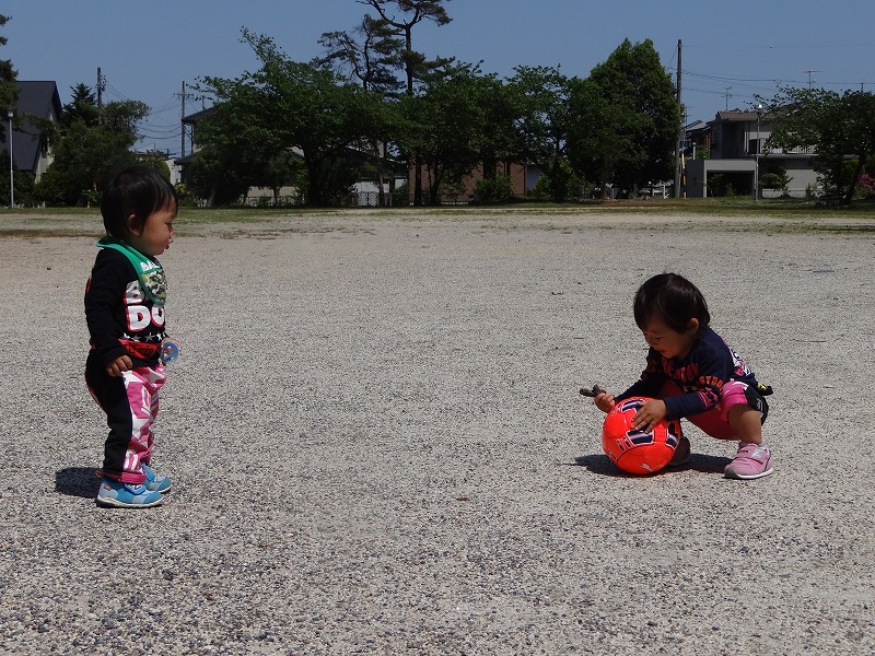 公園でボールで遊んで、